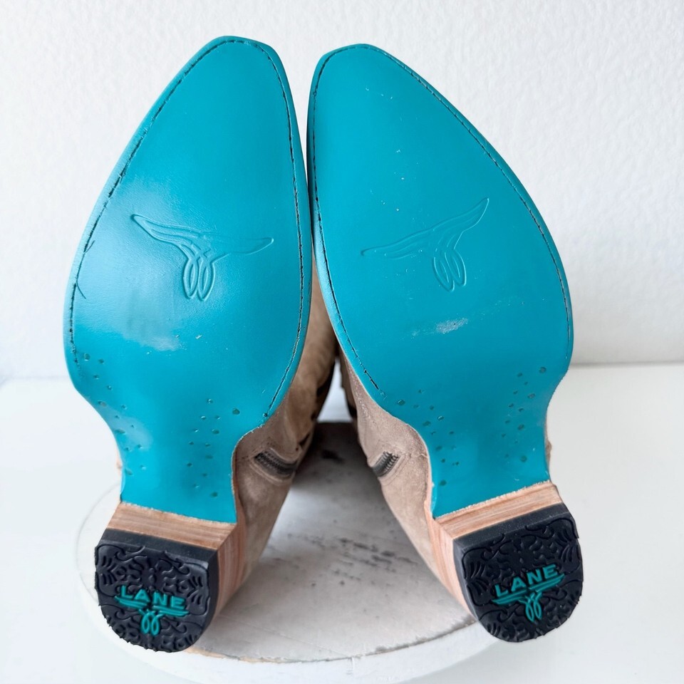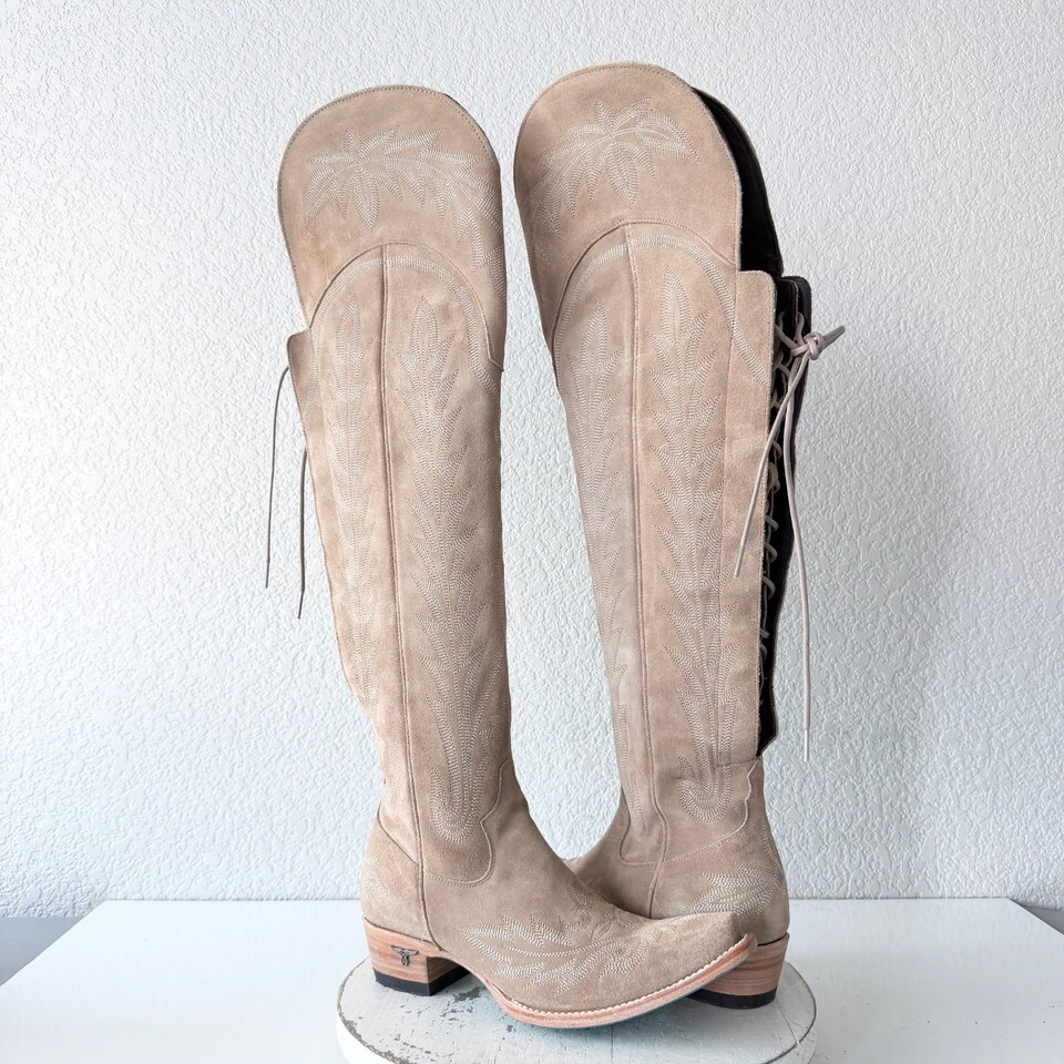 Lane LEXINGTON Over the Knee Womens Cowboy Boots 8.5 Latte Suede Western Cowgirl