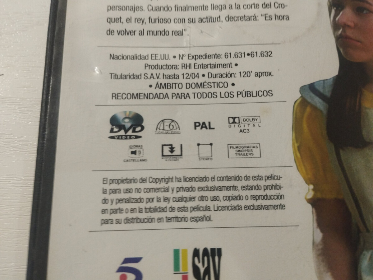 Alice de el Whoopi Goldberg Ustinof DVD Reg All Spanish