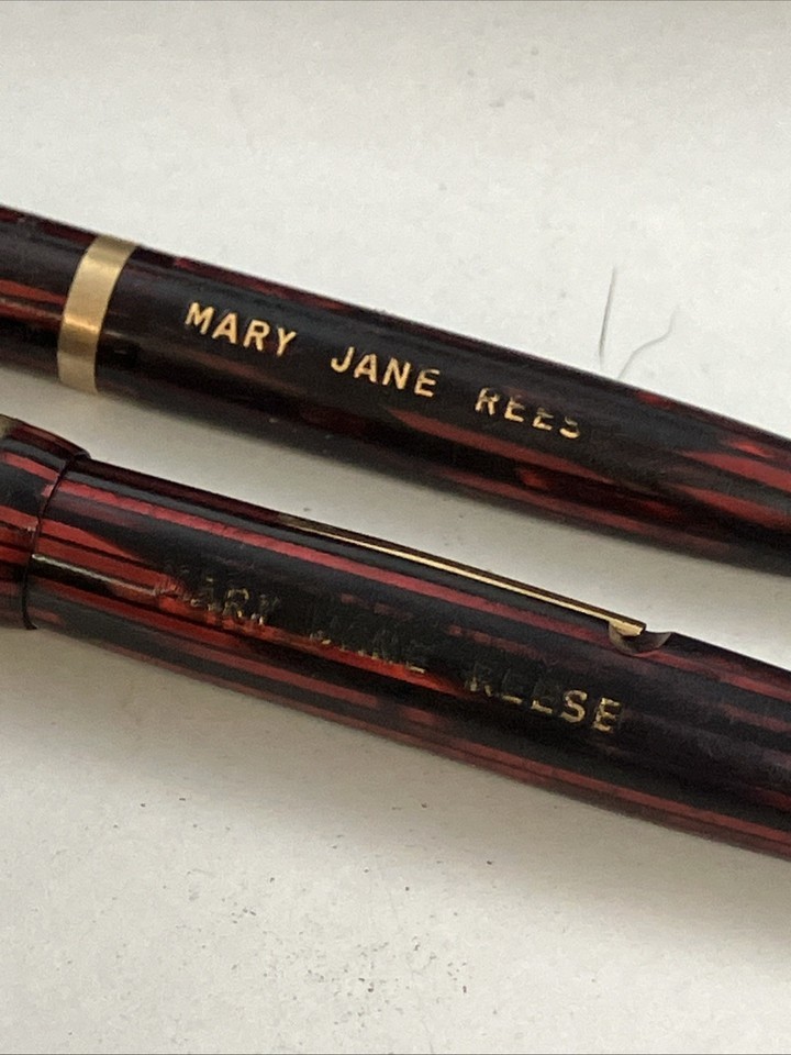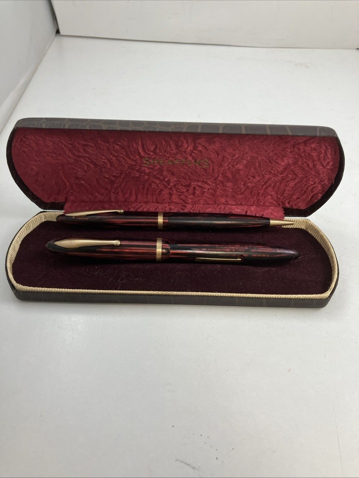 Sheaffer 500 Feather Touch Pen & Pencil Set Red & Green Striated LOT OF TWO
