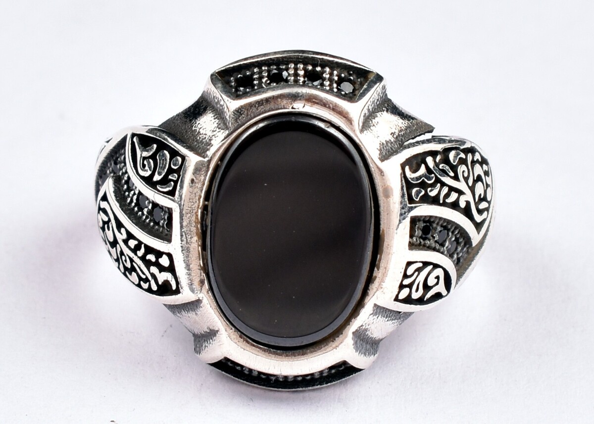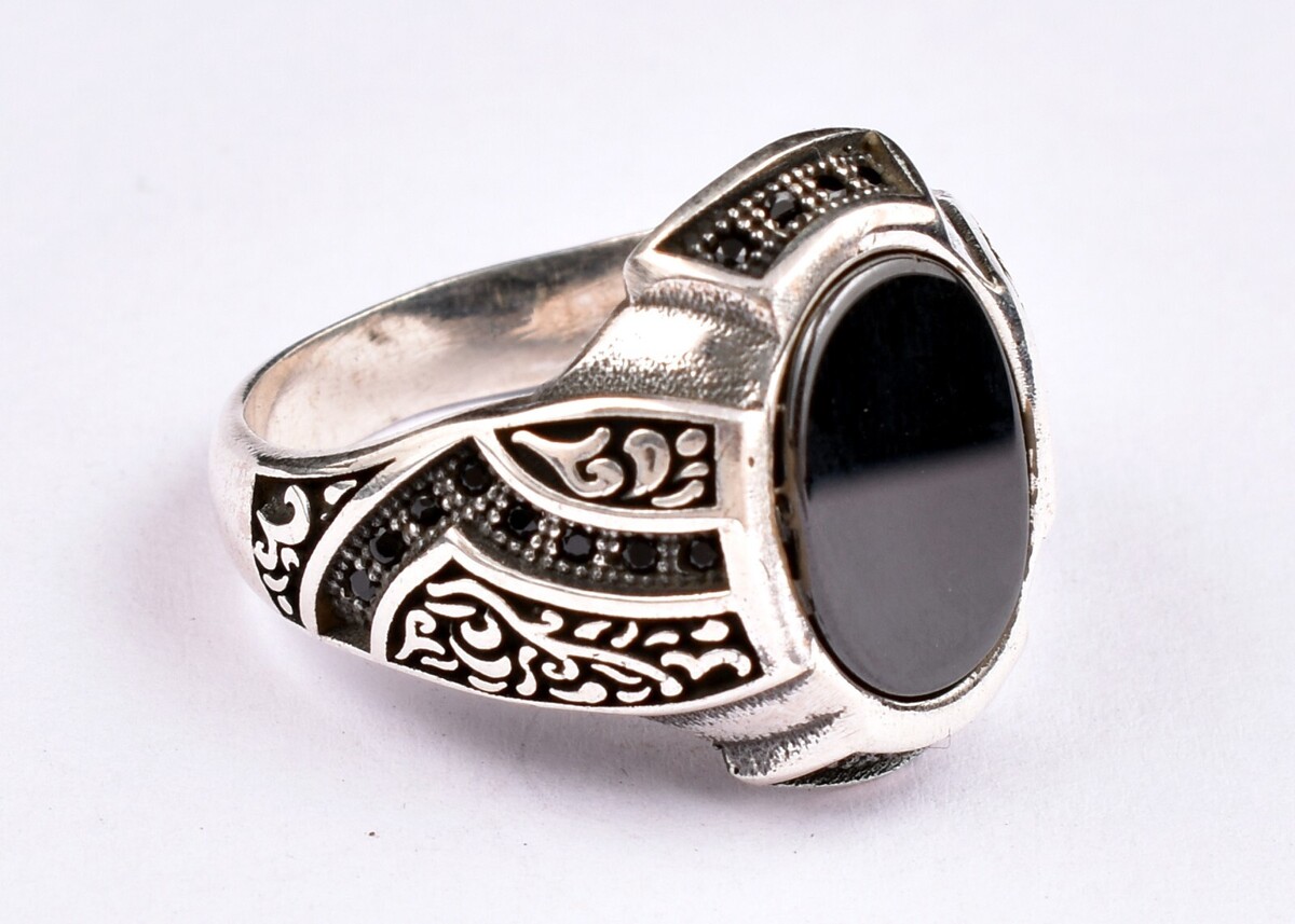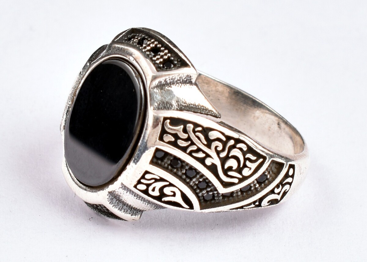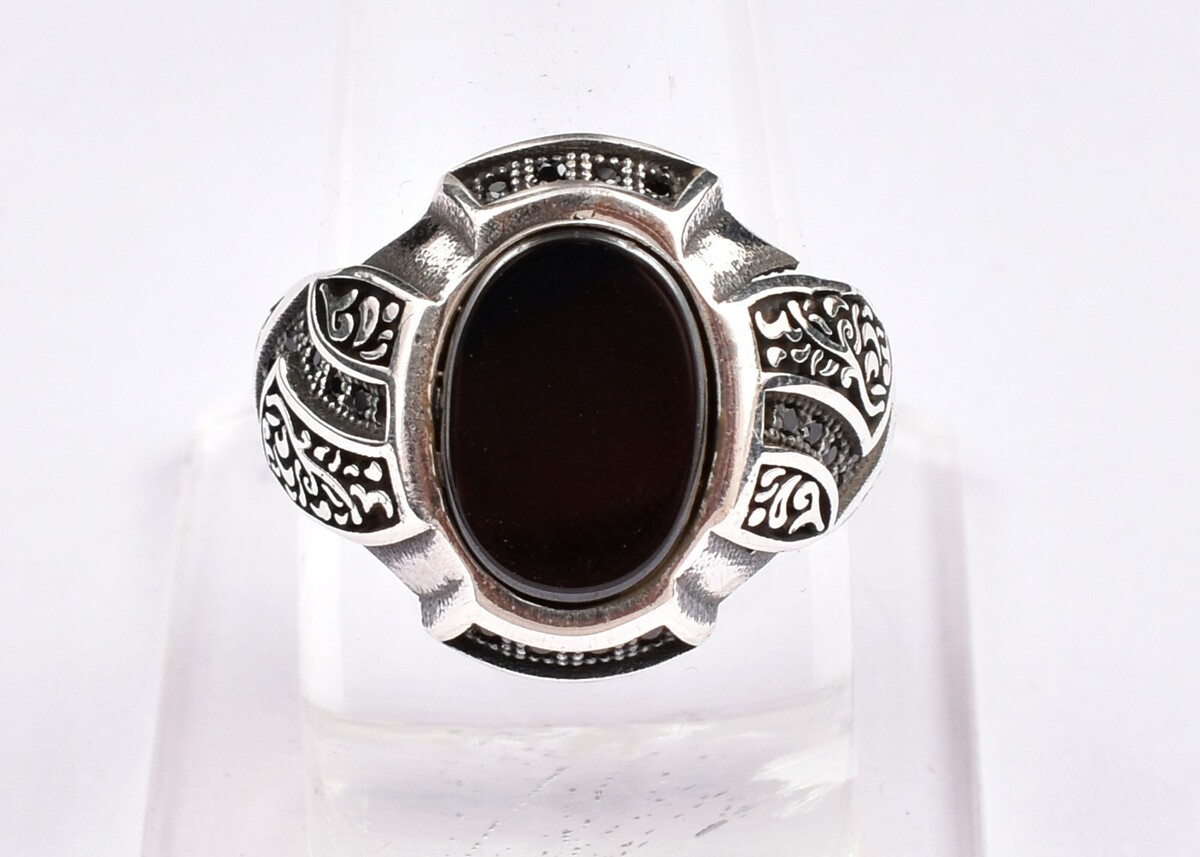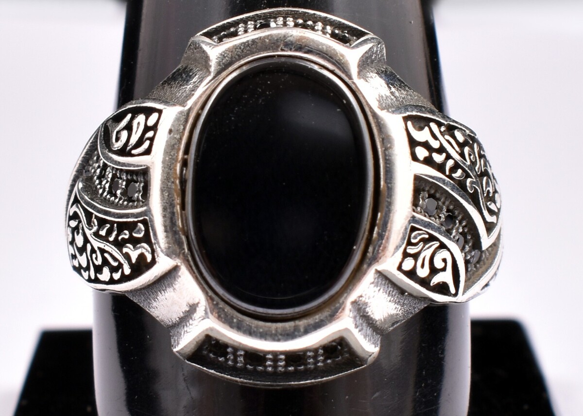 Bague ancienne en argent sterling 925, pierre précieuse onyx noir artisanale ...