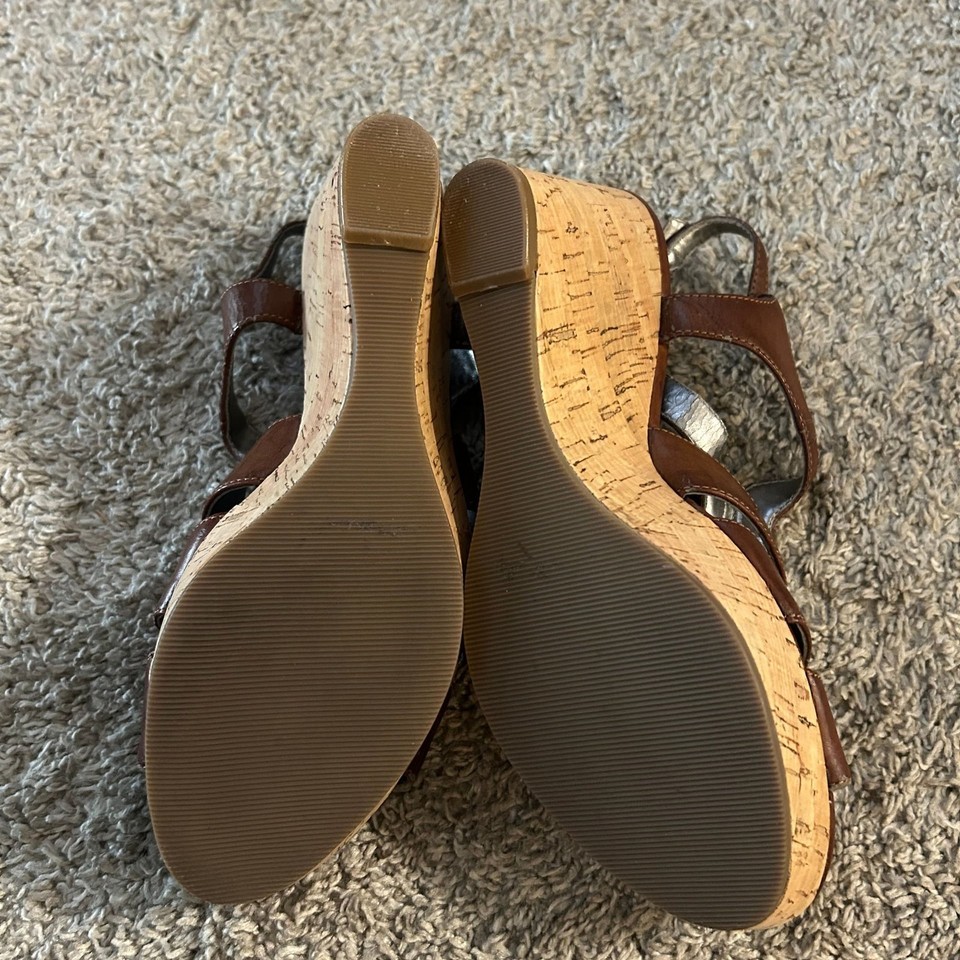 Marc Fisher Brown Leather Slingback Wedges, Women's Size 7.5
