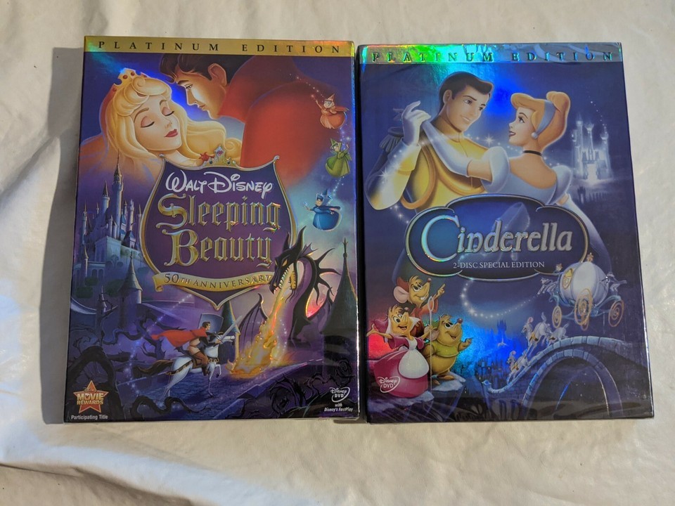 Lote De 2 Walt Disney Dvds Sueño Belleza Cinderella Platino Edición Nuevo