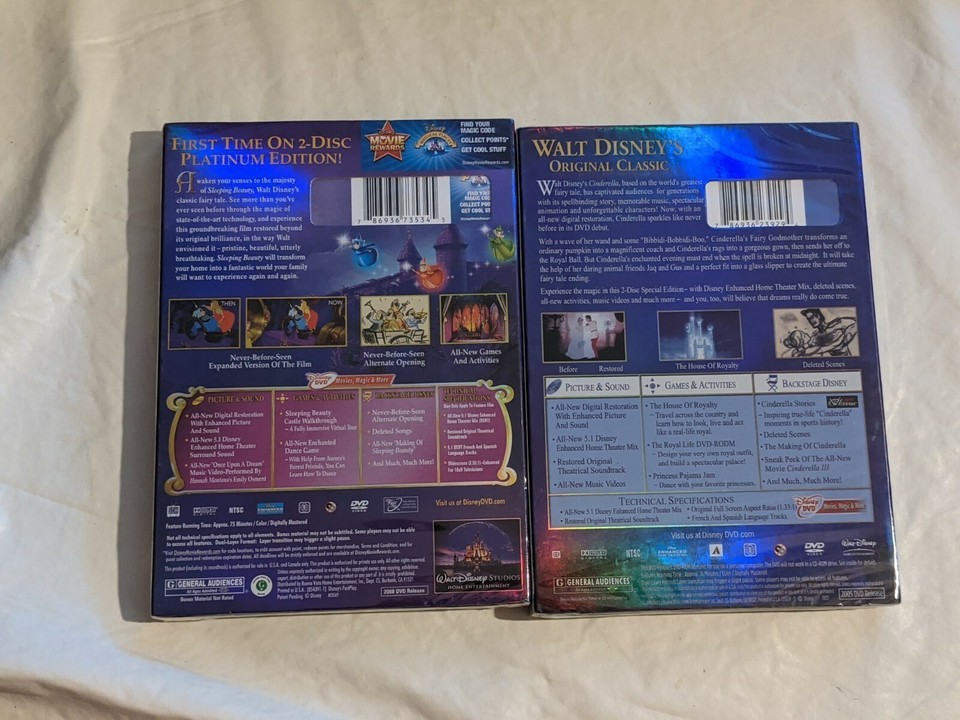Restposten Von 2 Walt Disney Dvds Schlafen Beauty Cinderella Platin Edition Neu
