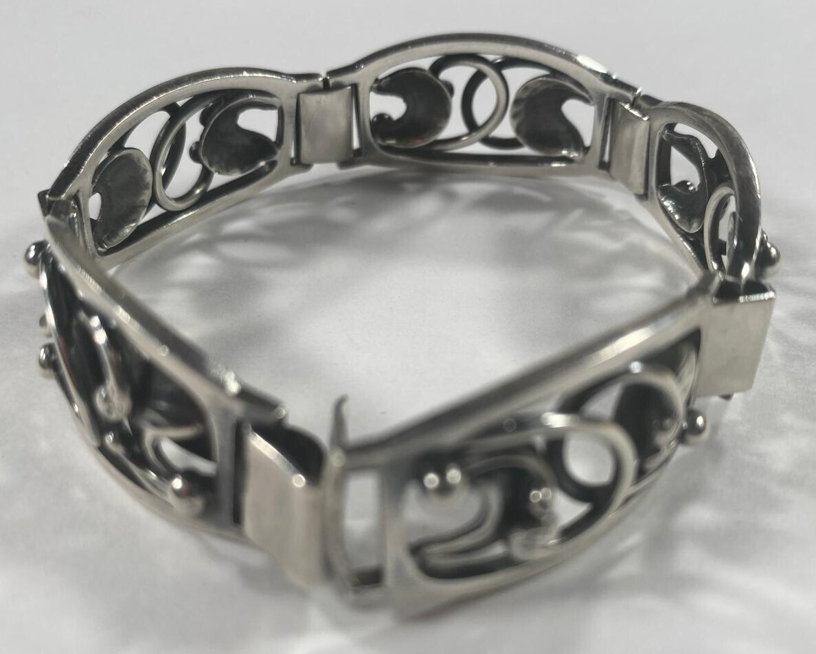John Lauritzen Denmark Sterling Silver Floral Station Bracelet 7.5" Gorgeous