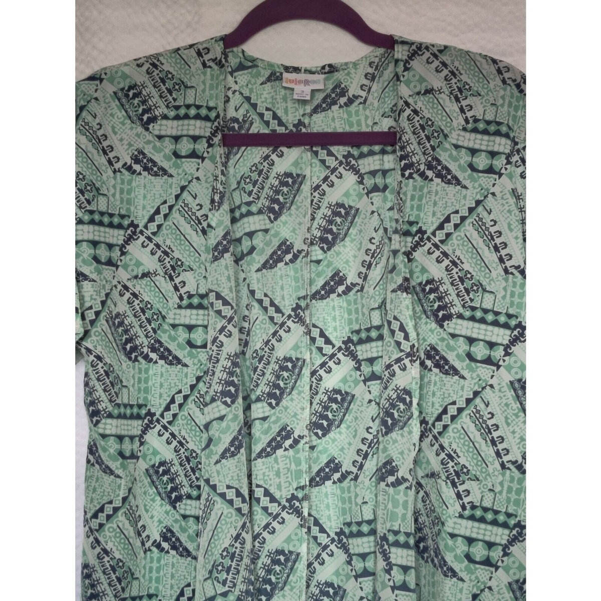 LulaRoe Geometric Lightweight Short Sleeves Open Front Kimono Womens Size 3
