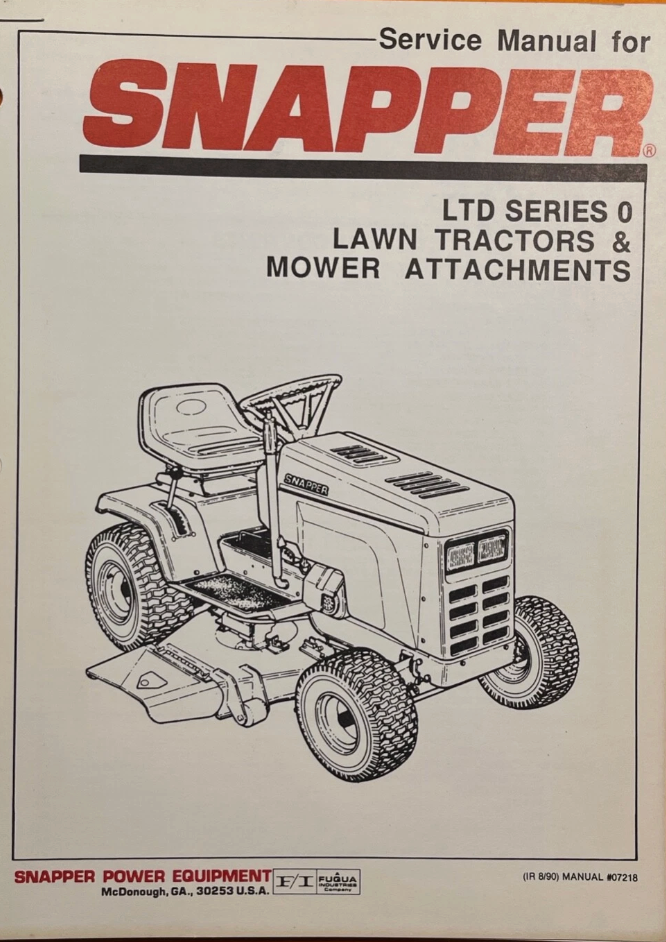 Service Manual for Snapper LTD Series 0 Lawn Tractors Mower Attachments OEM