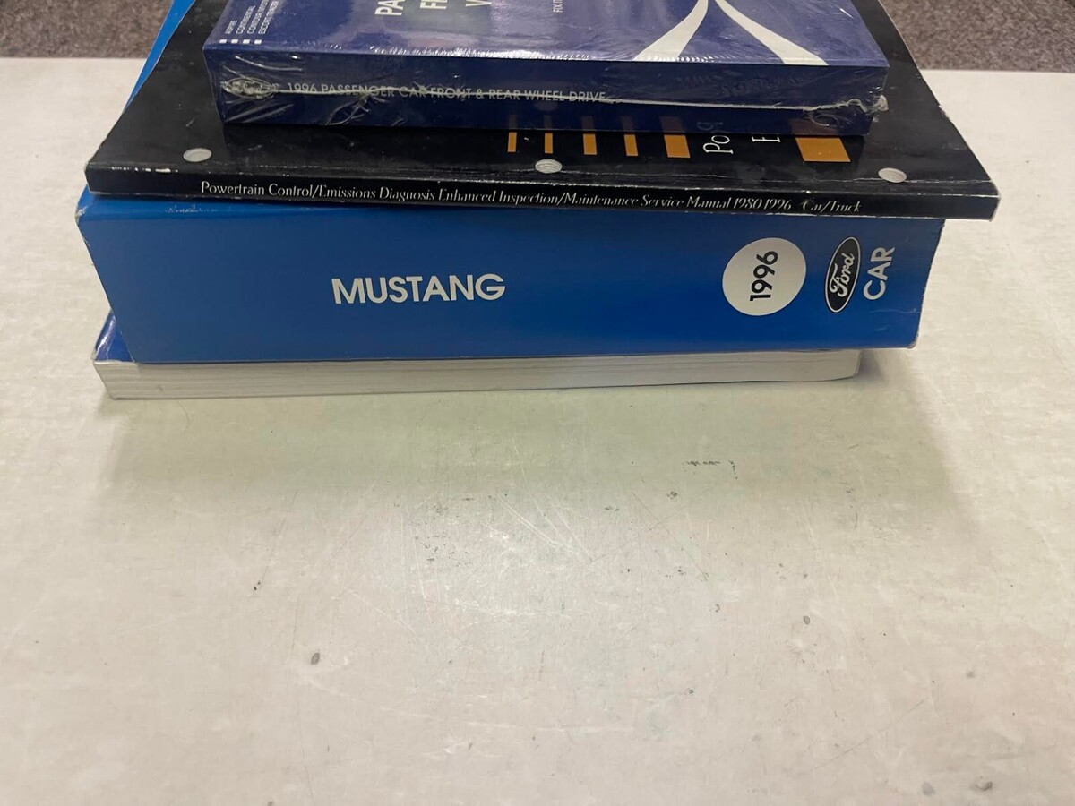 Factory 1996 Ford MUSTANG Service Manual, Powertrain Control Emission Diagnosis Manuals, Transmission Reference Binder Manual, Electrical and Vacuum Wiring Diagrams Manual, Pre Delivery Manual, Facts Book Summary Manual
