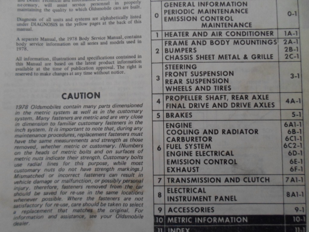 1978 GM Factory Oldsmobile ALL MODELS Service Manual, Fisher Body Manual, Product Manual, Diesel Manual
