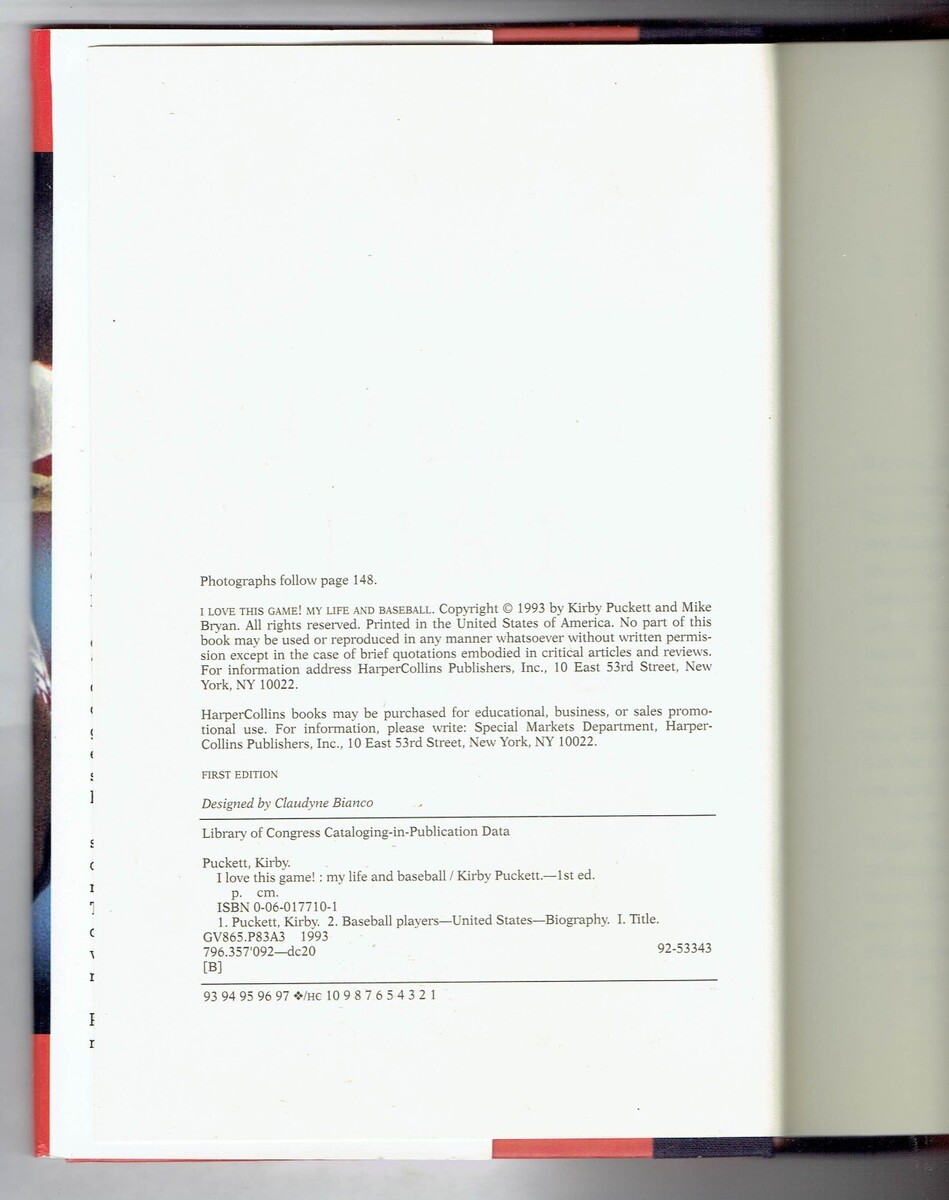 I Love This Game My Life in Baseball By Kirby Puckett Signed Autographed HB Book