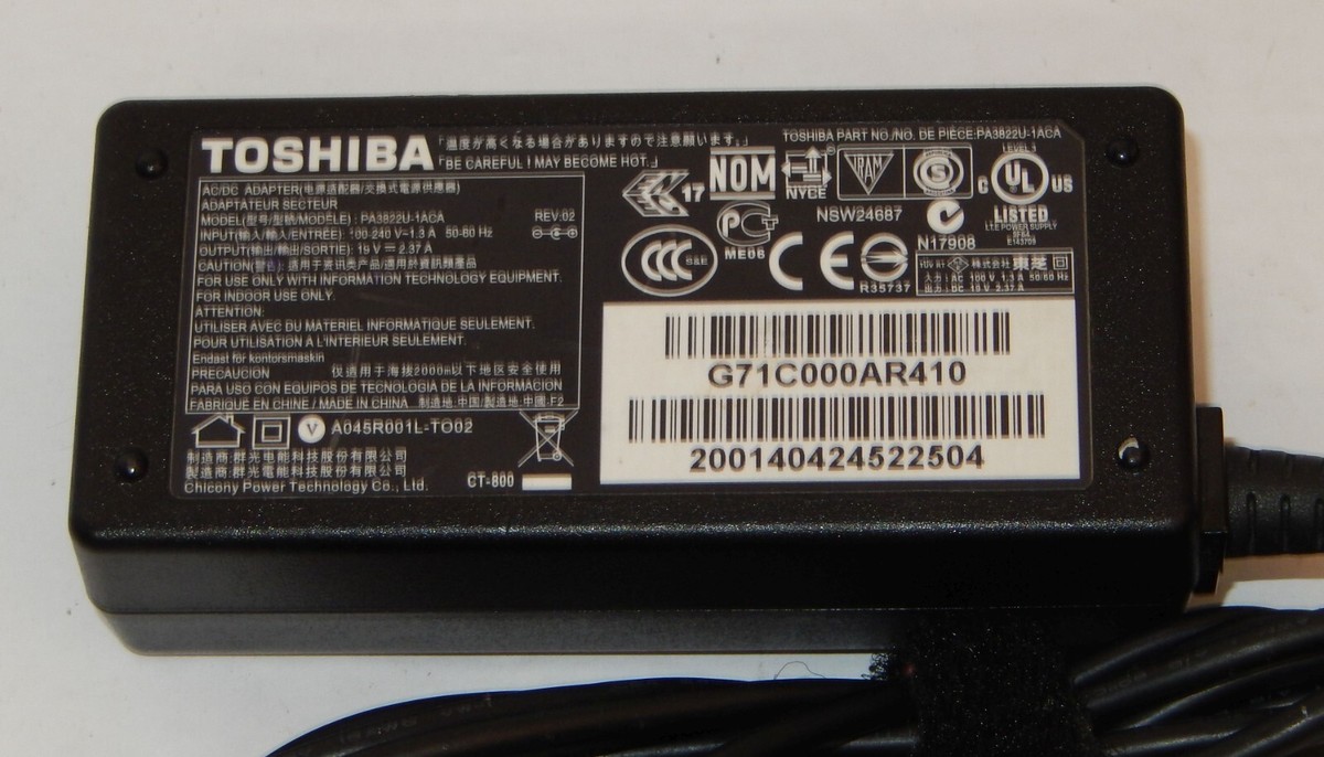 Toshiba Power adapter PA3822U-1ACA Laptop Battery Charger Input 100-240v