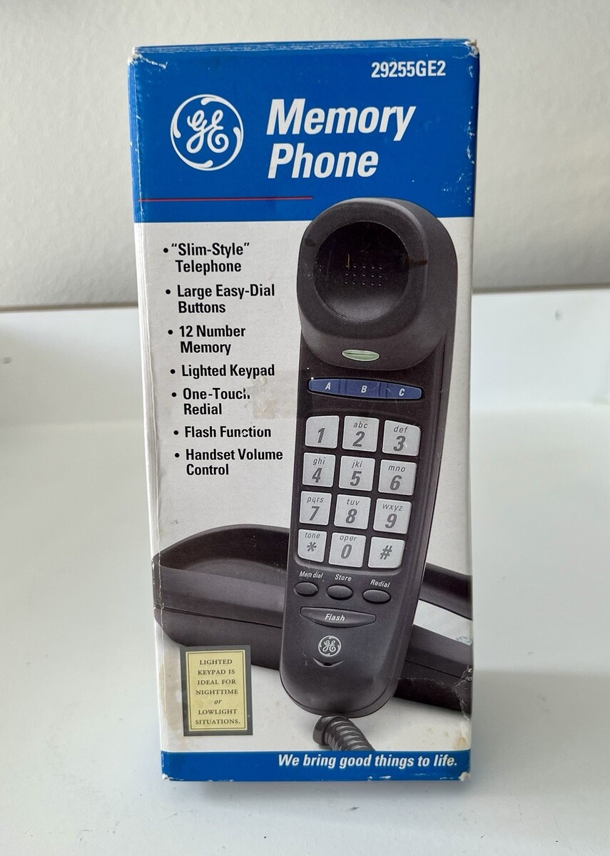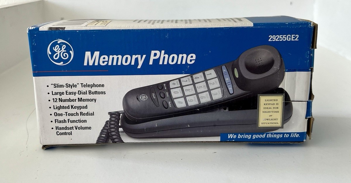 The GE Memory Phone Model#29255GE2 is a vintage-style corded telephone in black color, featuring speakerphone and trimline design. This desk/wall touch-tone phone from GE is a reliable and stylish option for home or office use. With one phone line and a retro design, this unit is a classic choice that offers both functionality and style.