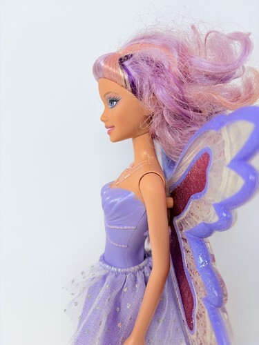 2006 Barbie Fairytopia Glitter Swirl Fairy Wing Doll Purple Hair (No Liquid)