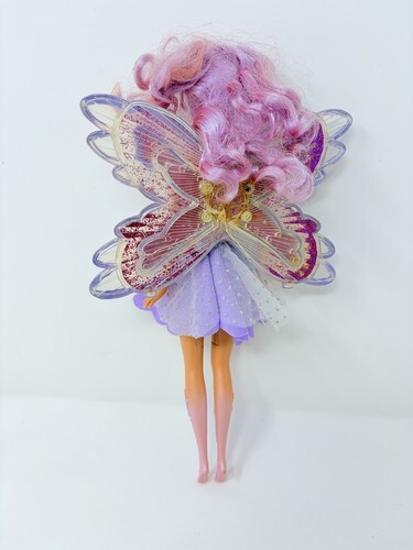 for a Barbie Fairytopia purple glitter swirl doll. Her wing liquid is all gone and wings are cracked. With batteries she does whir so the motor that would circulate the glitter liquid is still working. You may be able to repair her. She is in good condition otherwise.