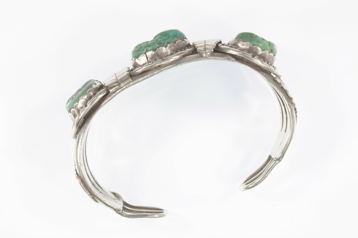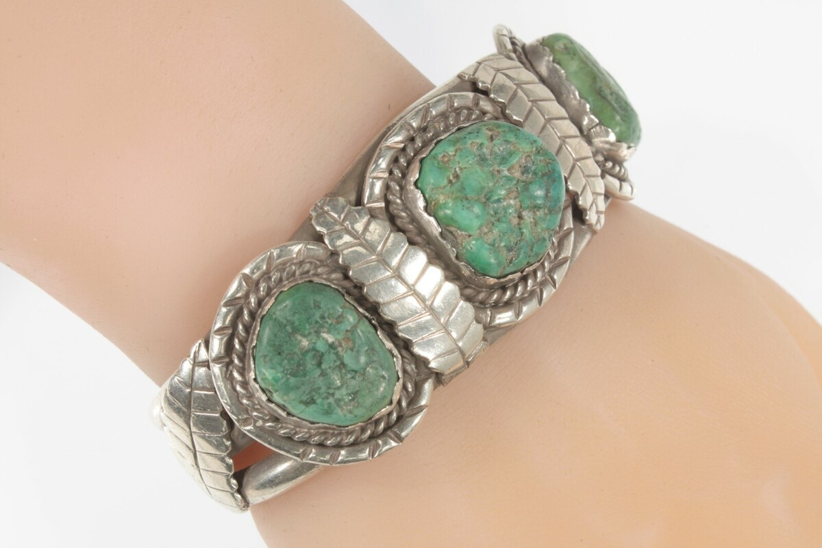 Vintage Navajo Green Turquoise Sterling Silver Cuff Bracelet
