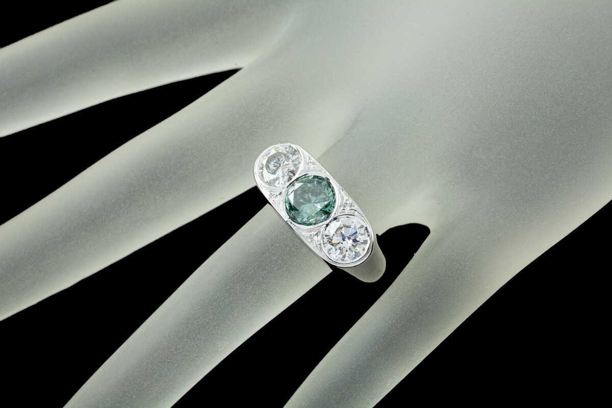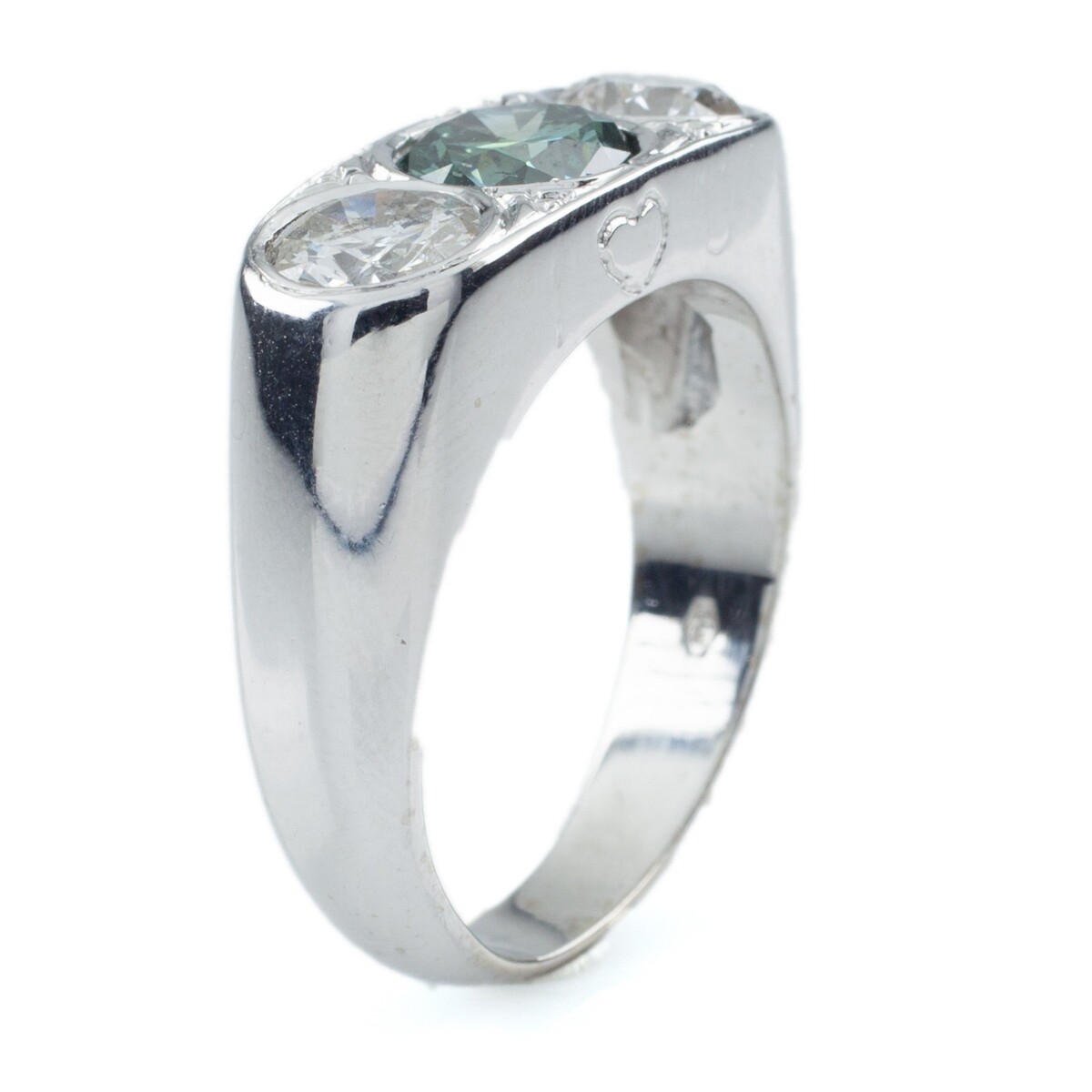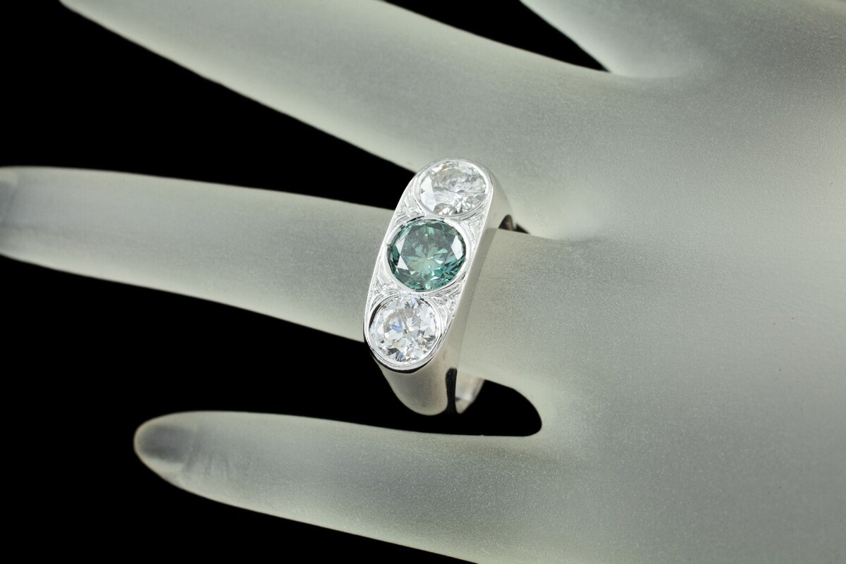 1.00 Carat Blue Diamond 14k White Gold Three-Diamond Ring Size 9.25