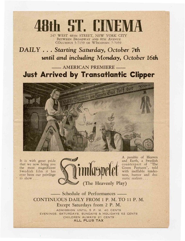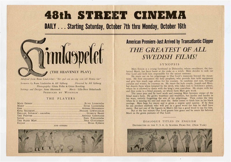 48th St Cinema Program 1942 New York Himlaspelet Heavenly Play Swedish Film