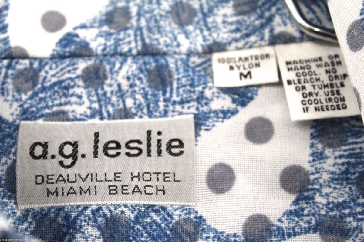 Vtg 70s A.G. Leslie Disco Shirt M Blue Mod Print Deadstock NOS Miami Beach