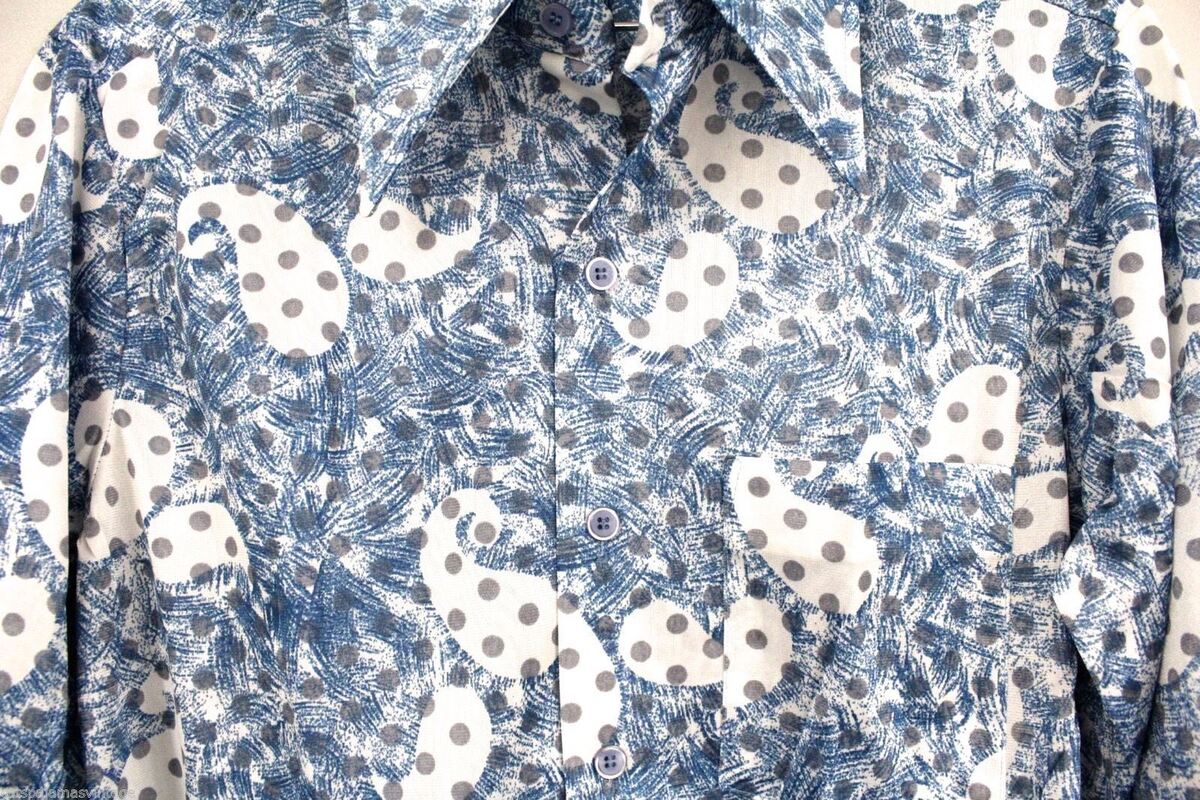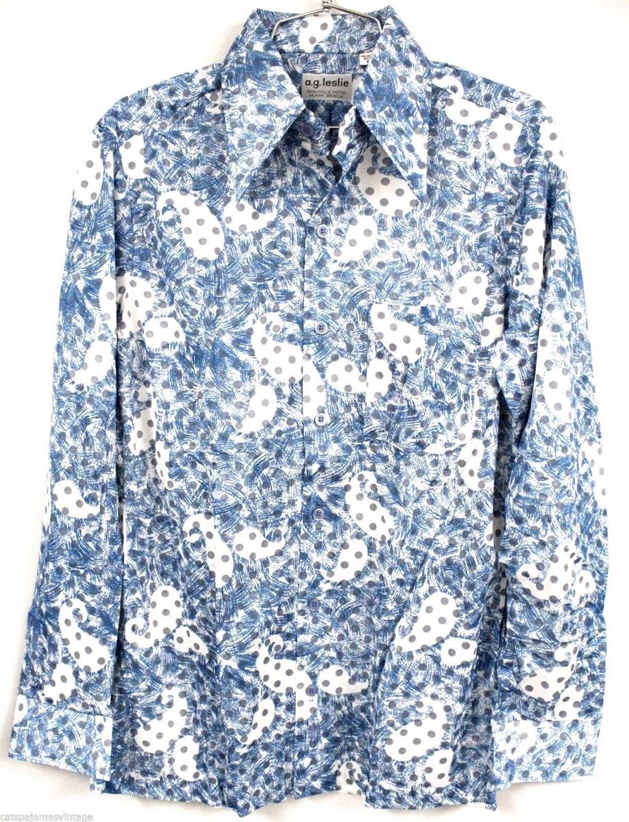 Vtg 70s A.G. Leslie Disco Shirt M Blue Mod and 47 similar items