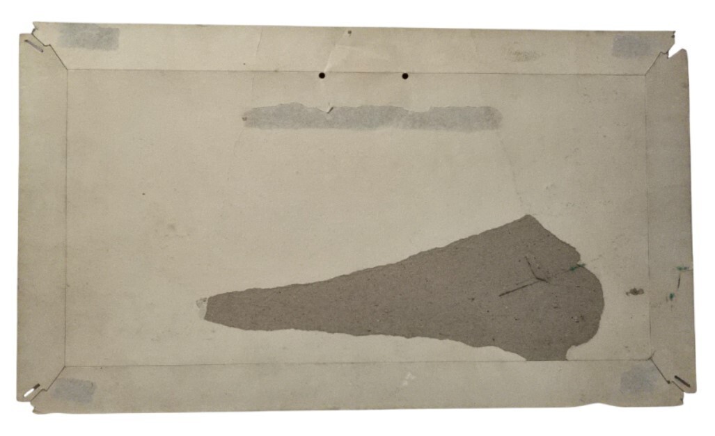 Back: Shows original cardboard texture with some paper loss/peeling from previous mounting, but the structural integrity remains sound.