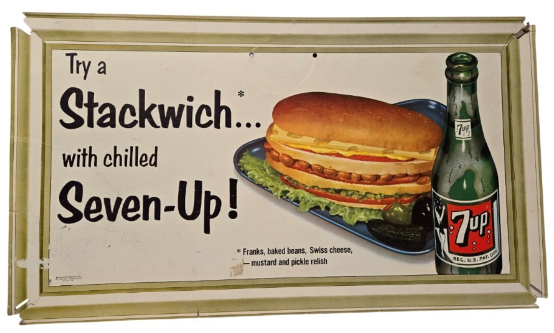 Authentic Vintage 1953 7-Up "Stackwich" Cardboard Advertising Sign
