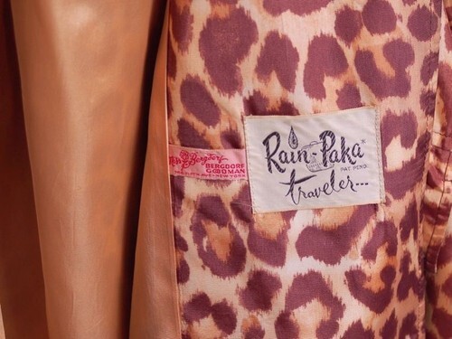 Vtg 50s Leopard Print Swing Coat M Bergdorf Goodman Rain Paka Belted