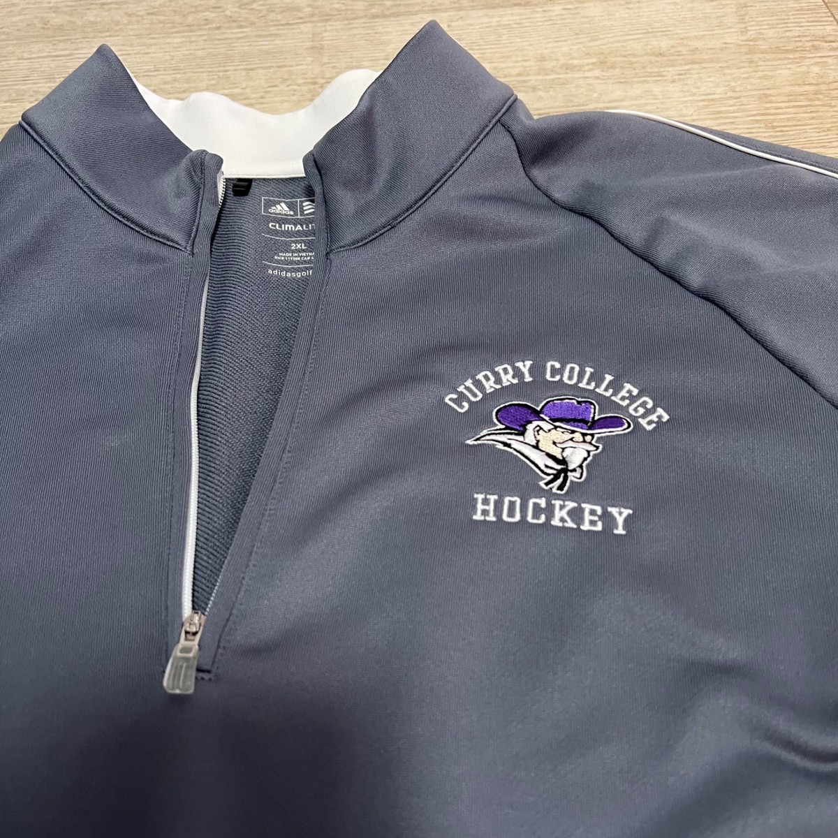 Keywords: Adidas, ClimaLite, Curry College, Hockey, Pullover, 1/4 Zip, Men's, Activewear, Athletic, Sports, Team Gear, Casual, Gray, 2XL
