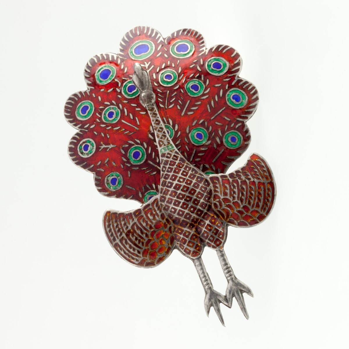 Gorgeous Sterling Silver Siam Colorful Peacock Enamel Brooch