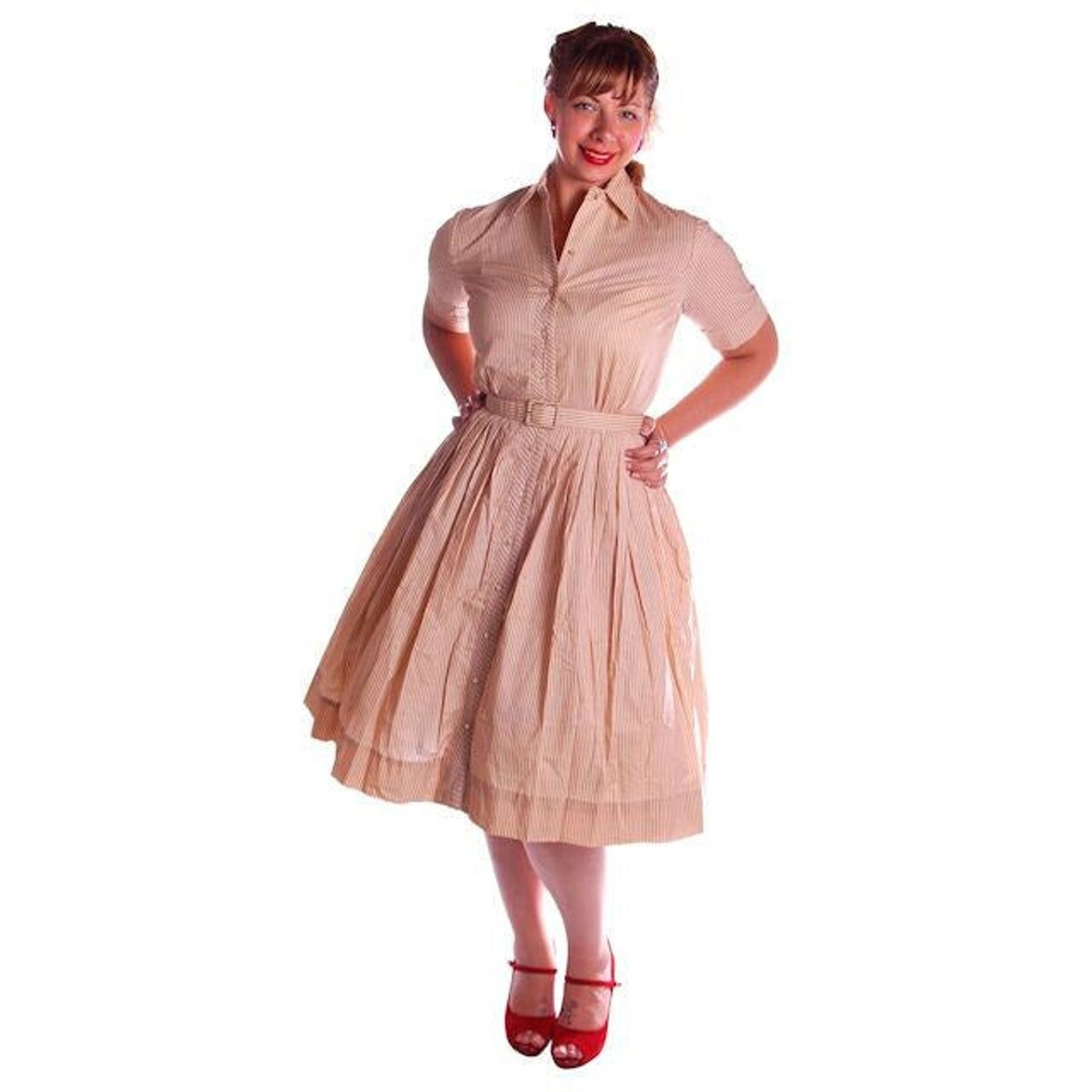 VTG 1950s Spectator Red White Cotton Shirt Dress NOS Belted Sz 6โ8 S