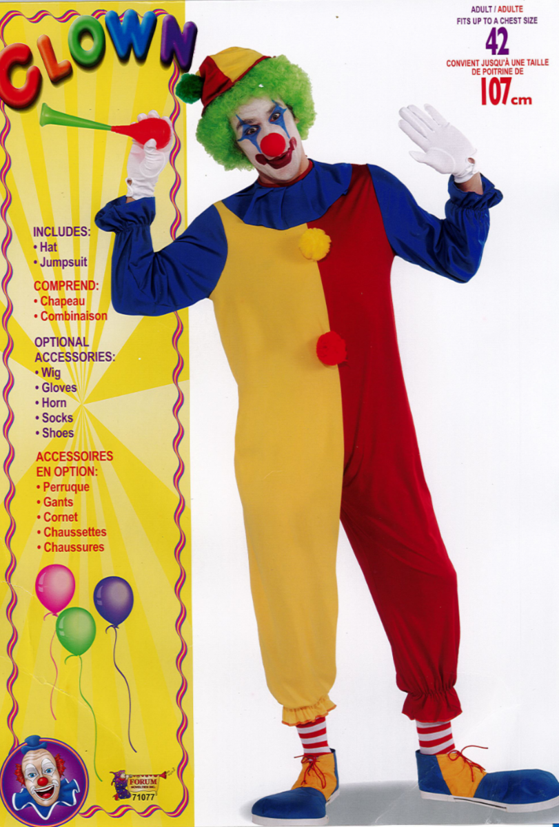 FORUM COLORFUL CLOWN UNISEX HALLOWEEN COSTUME ADULT SIZE STANDARD 71077