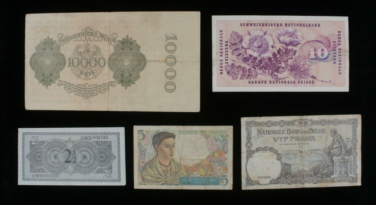 European Nations 5-Notes Lot // Belgium France Germany Netherlands Switzerland
