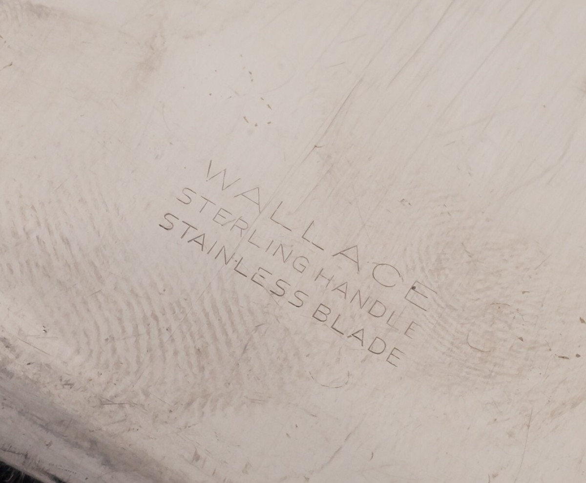 Wallace Sterling/Stainless Cake Server, Fork, Knife With Rose Point Pattern