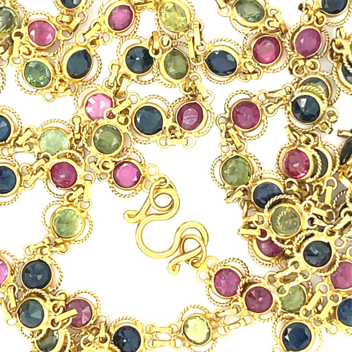 18K Gelbgold Lünette Set Multi-Gem-Kettenkette 26 "bezaubernd!