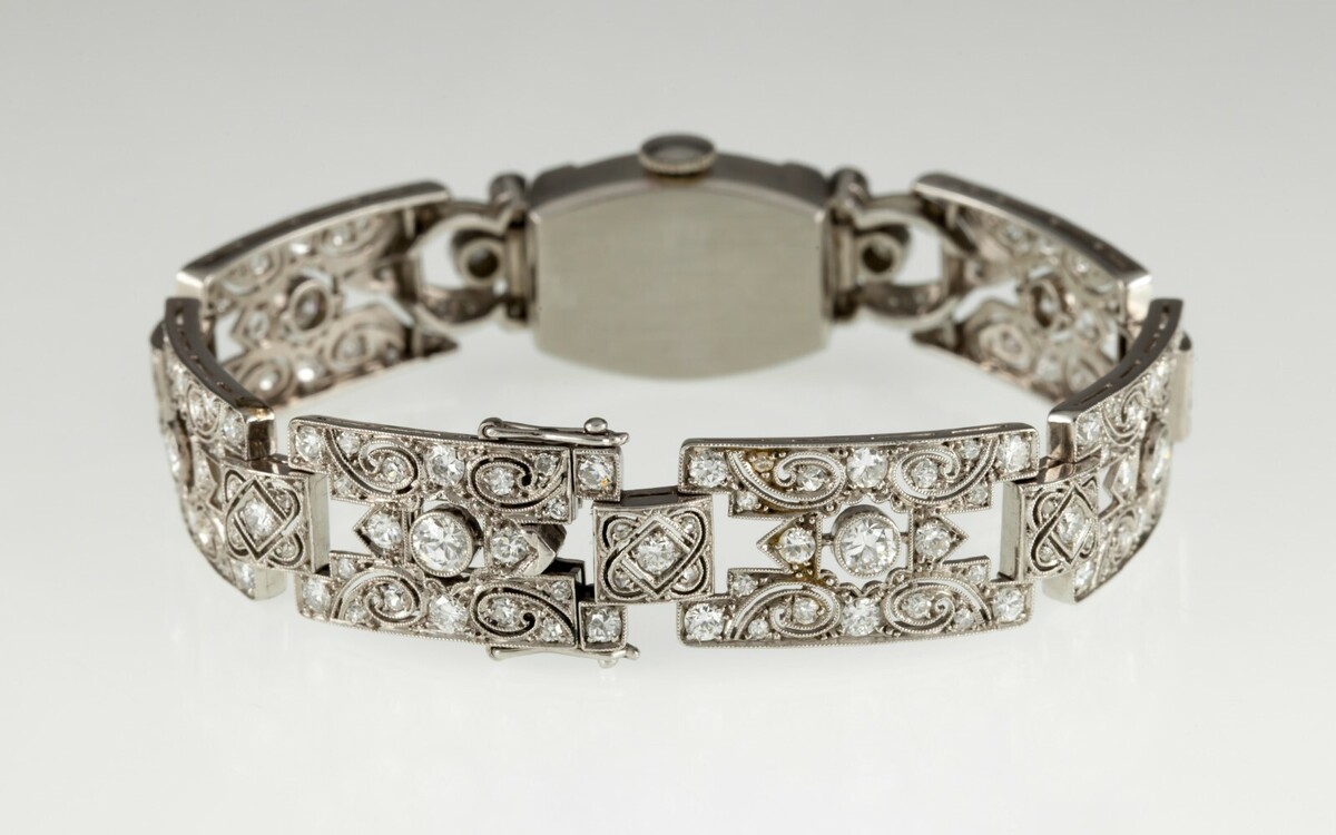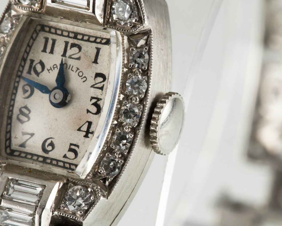 Hamilton Orologio da donna in platino con diamanti, delicato filigrana Mov #911