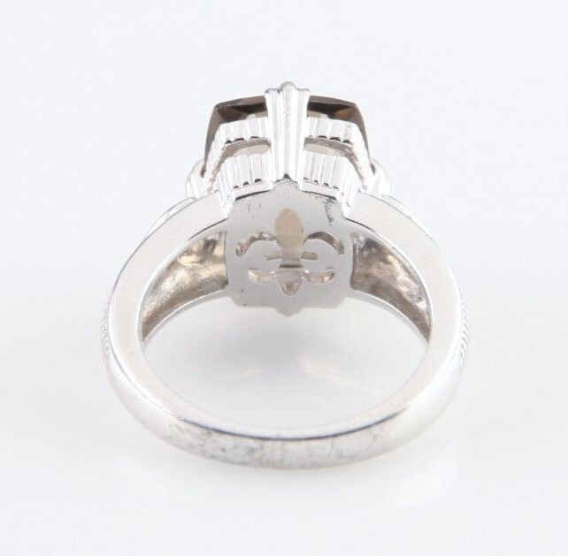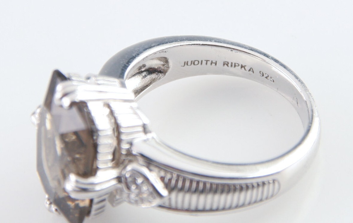 Judith Ripka Sterling Silver Cushion Cut Smoky Quartz Ring w/ CZ Accents Sz 10