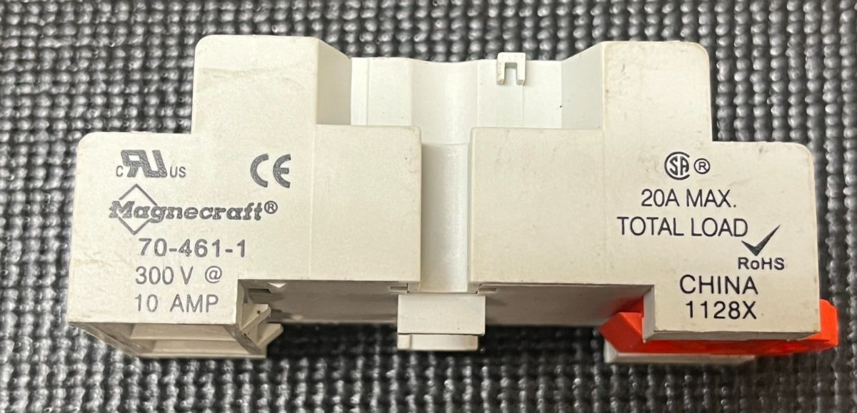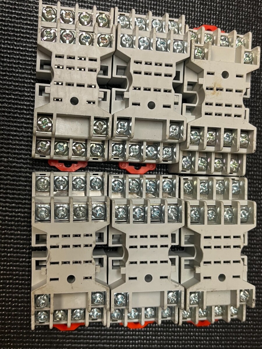 Lot of six Magnecraft 70?461?1 14?pin relay sockets for 4PDT plug?in control relays. These bases feature screw clamp terminals and can be mounted on standard 35 mm DIN rail or directly to a panel, making them ideal for control cabinets and automation projects. All were pulled from working equipment and are sold used and untested, so expect normal cosmetic wear like dust, label residue, or minor scratches. Great for spares or bench setups?please review photos for exact condition and terminal layout.