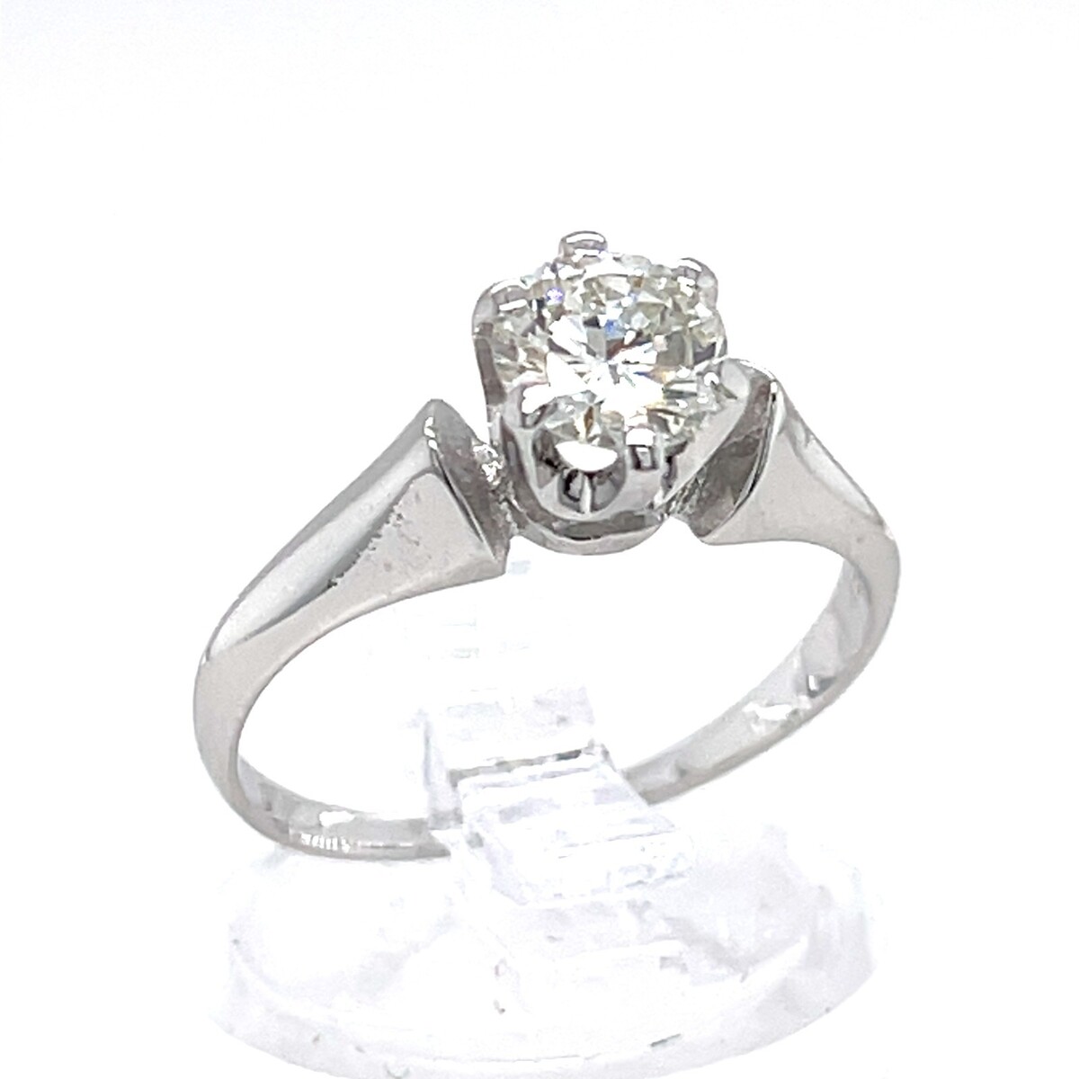 14 Karat Weißgold, 0,75 ct, runder Diamant-Solitarring, Große 6,5