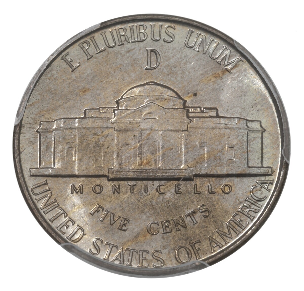 1943-D 5C Jefferson Nickel classificato da PCGS come MS67FS Full Steps