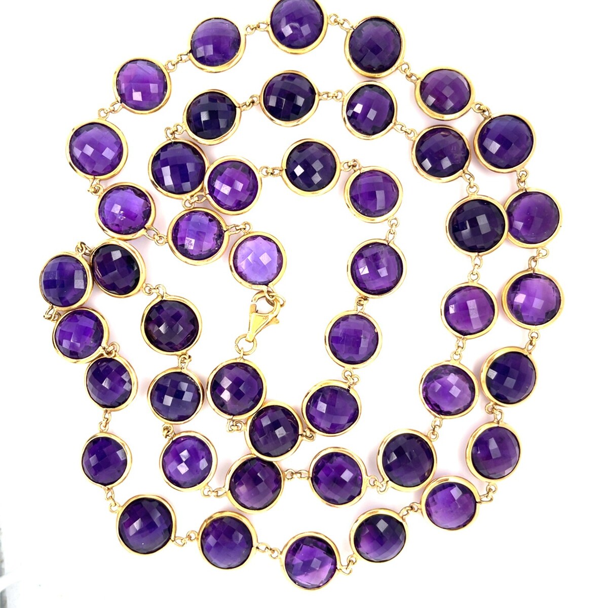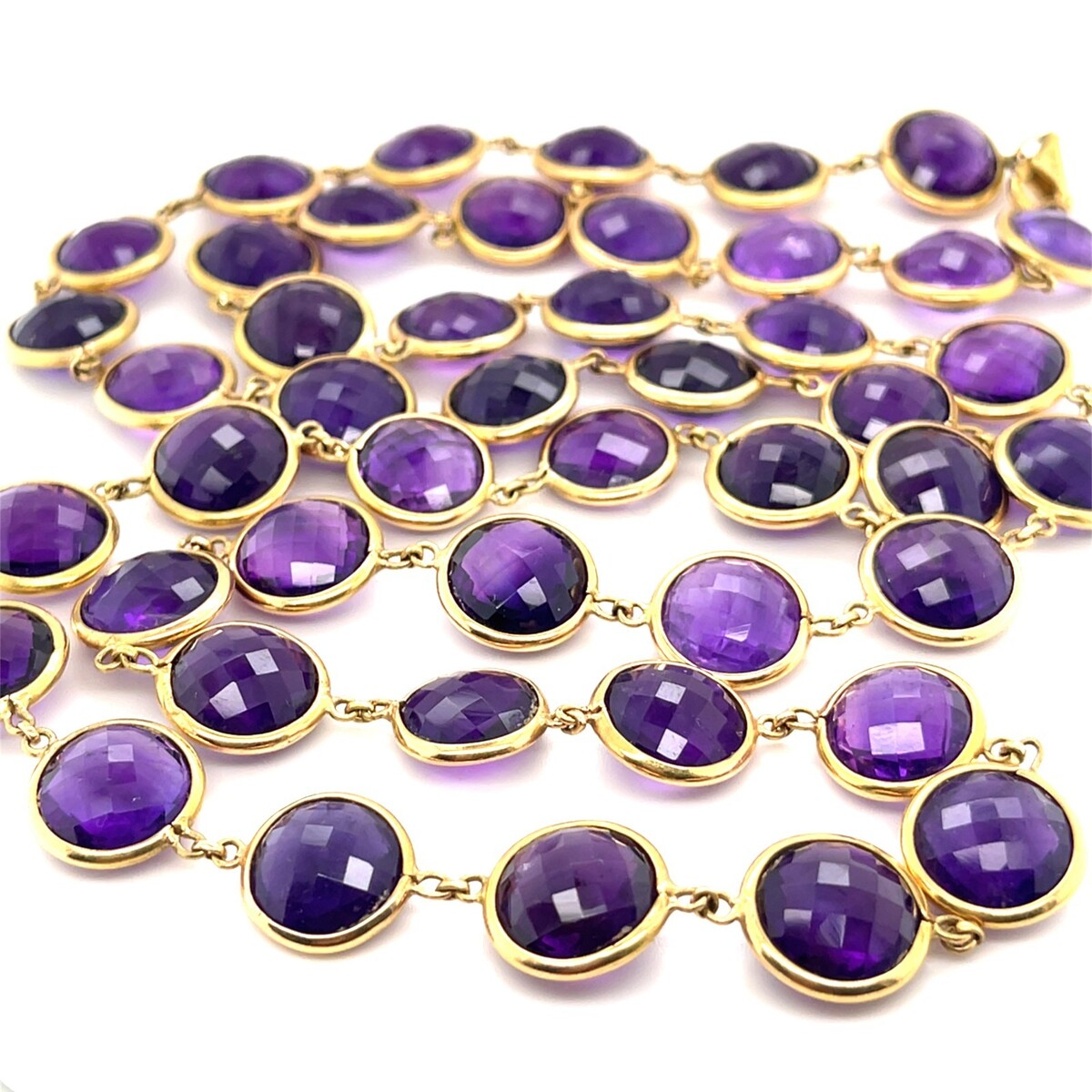 18k Oro Giallo 170ct Double-Cabochon Ametista Collana Lunga 38 " 81.30 Grammi