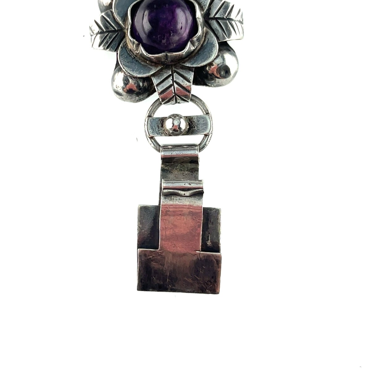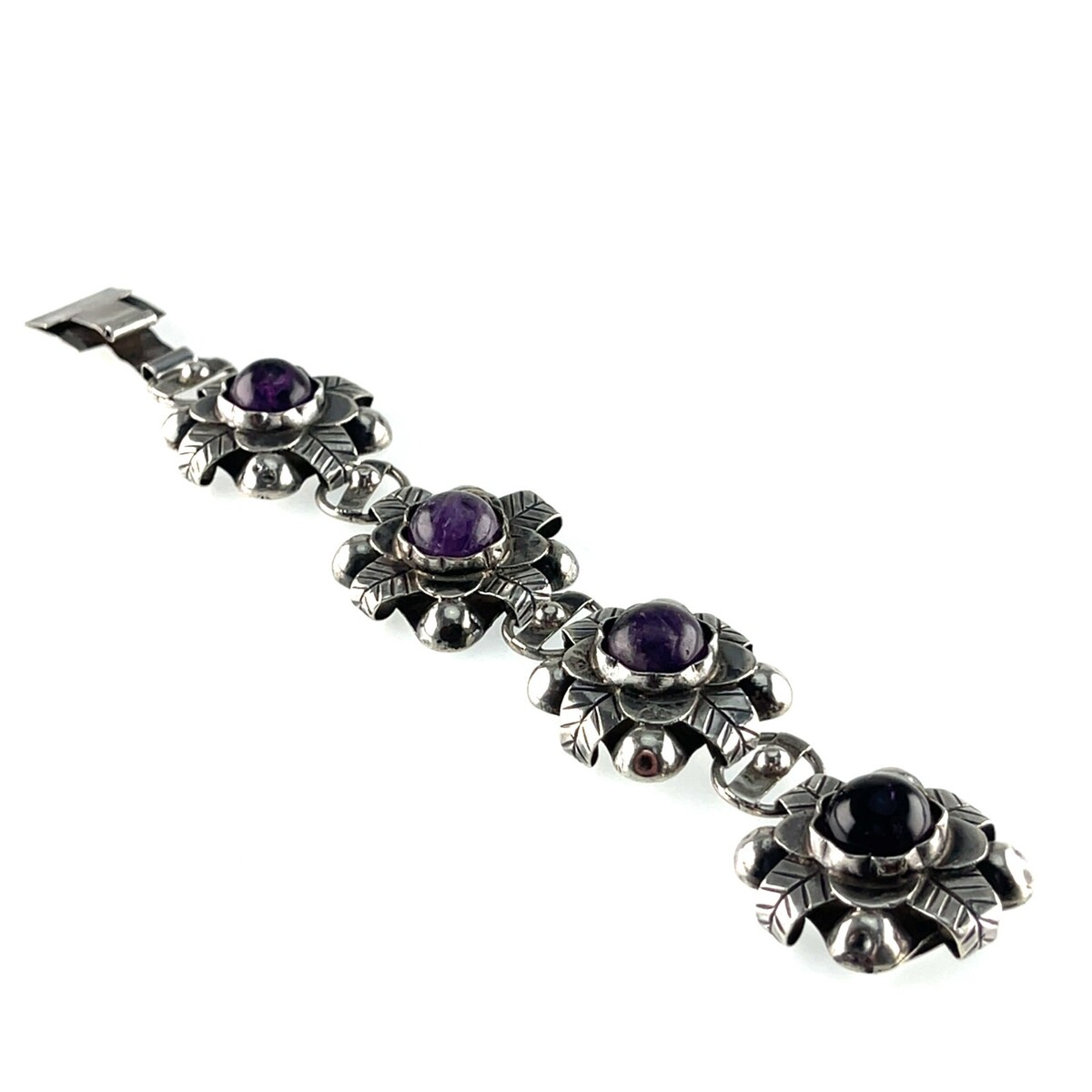 Vintage Mexico Sterling Silver Amethyst Floral Link Bracelet 7.50" 66.6gr