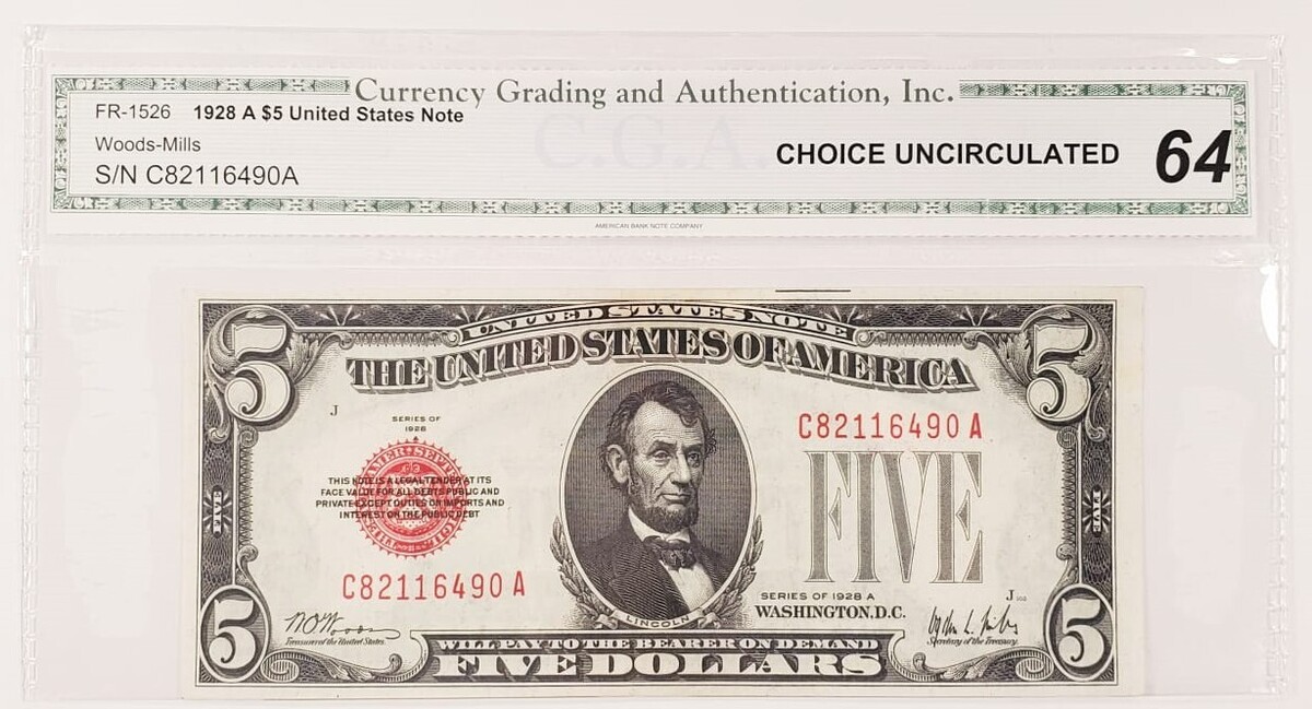 1928-A $5 BANCONOTA Degli Stati Uniti Scelta Non Circolata FR #1526