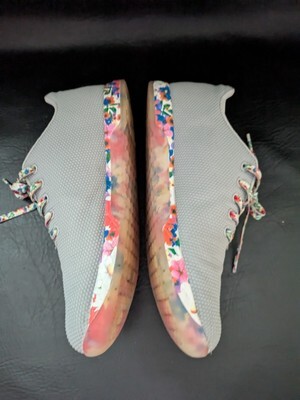 Ameliorez votre jeu d'entraînement avec ces baskets florales NoBull elegantes et confortables. Les baskets grises presentent un design bas et une fermeture a lacets, ce qui les rend parfaites pour l'entraînement en salle de sport, le CrossFit, la course et le jogging. Le materiau superieur synthetique et les caracteristiques respirantes garantissent que vos pieds restent frais et confortables pendant les chaudes journees d'ete, d'automne et de printemps. Les baskets sont disponibles en taille 10,5 pour femme et en taille 9 pour homme, avec une largeur de chaussure standard. La marque NOBULL est connue pour ses produits de haute qualite, et ces baskets ne font pas exception. Le theme du taureau ajoute une touche unique au design, les distinguant des autres chaussures de sport. Preparez-vous a attaquer votre prochain entraînement avec ces baskets polyvalentes et tendance.