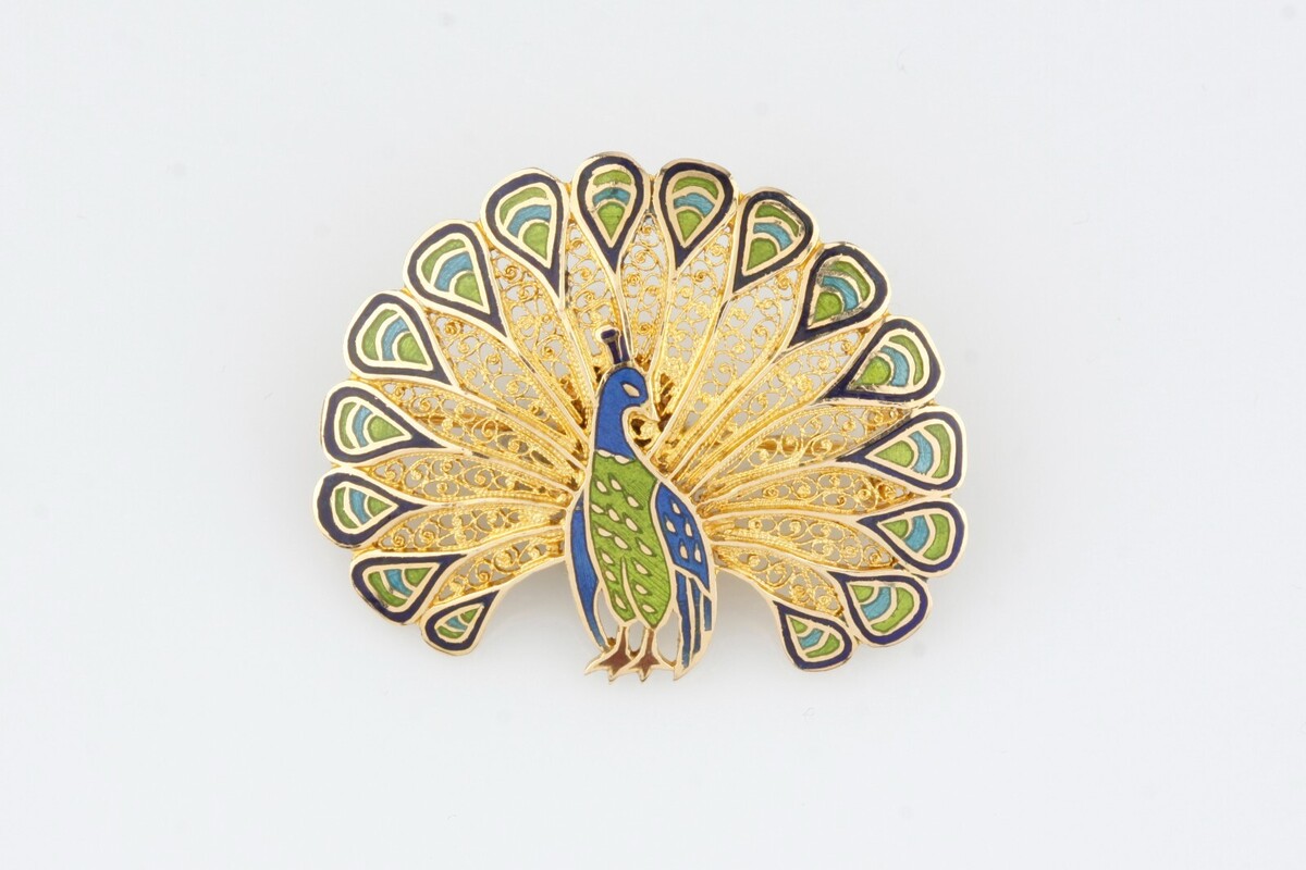 14k Yellow Gold Enamel Peacock Brooch and 46 similar items