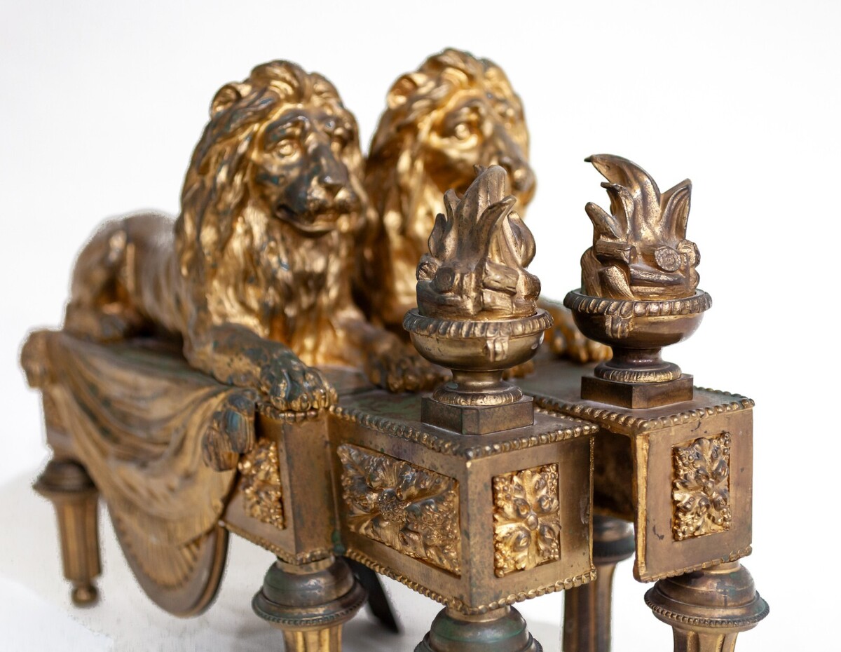 19th Century Pair of Ormolu Lion Chenets and 12 similar items