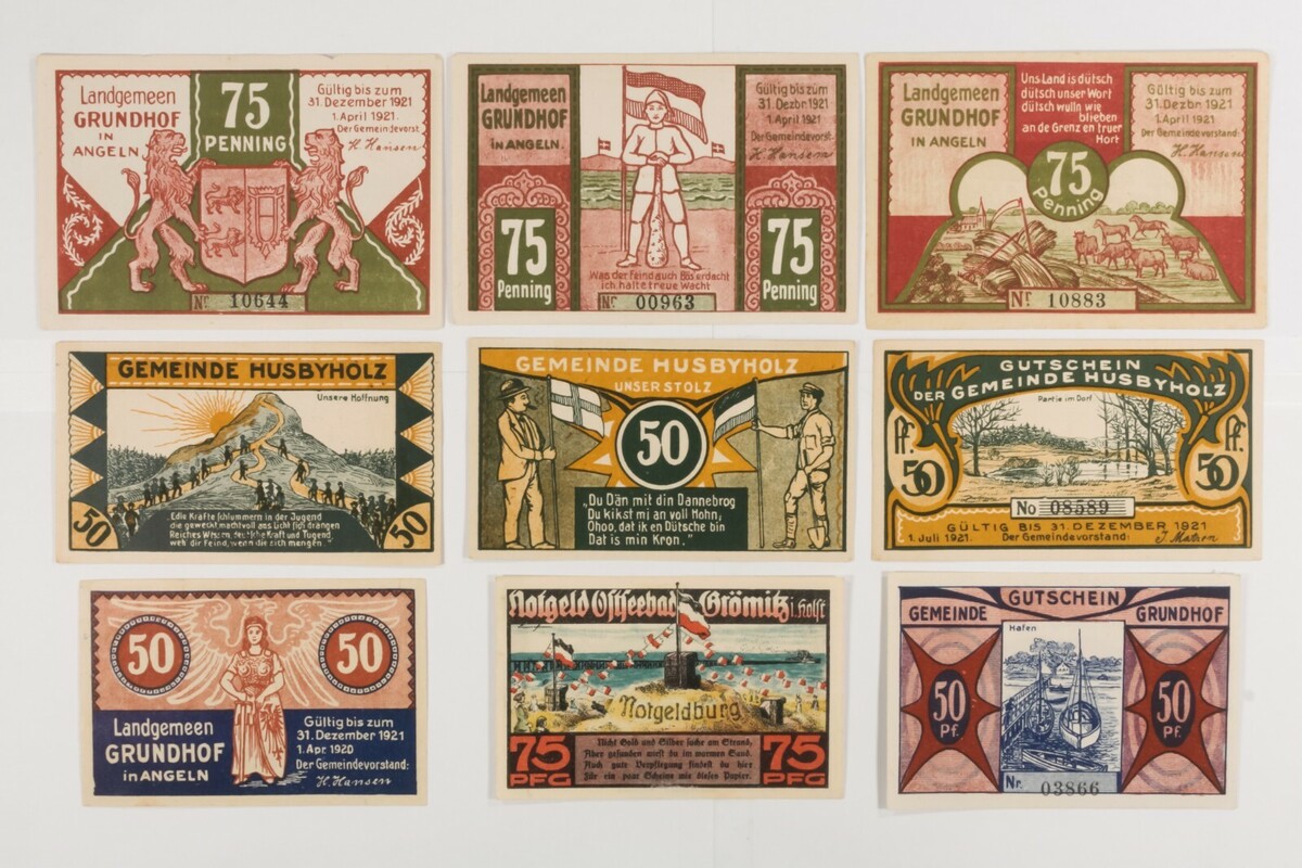 Alemania Plebiscite Notgeld Notes. & Dinamarca Frontera Dispute Propaganda