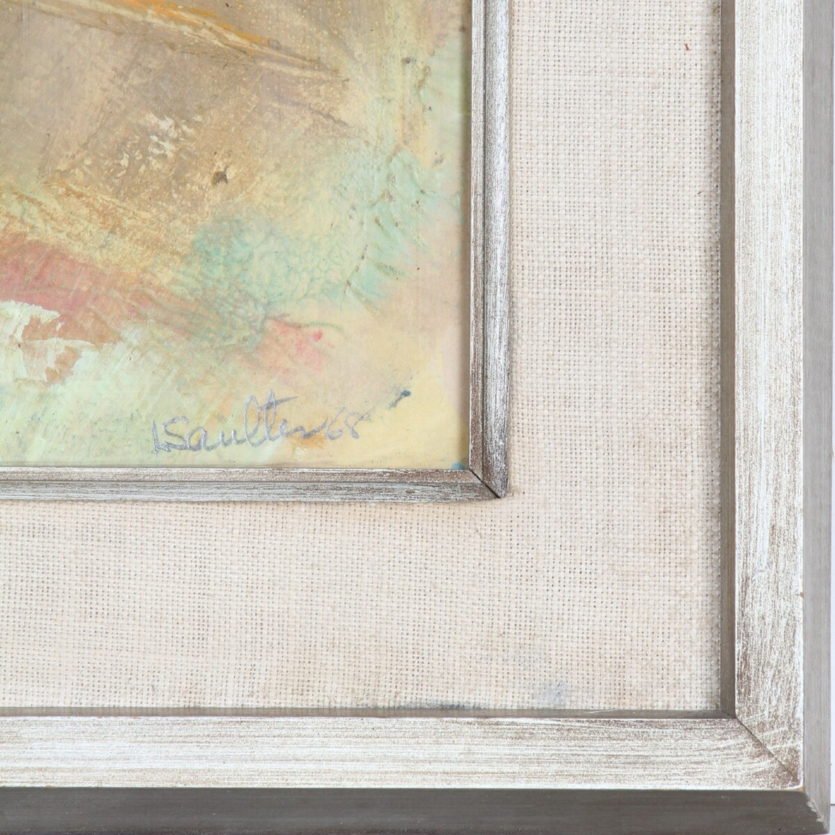 La pintura viene en un sencillo marco de madera y vidrio gris/blanco con detalles plateados.