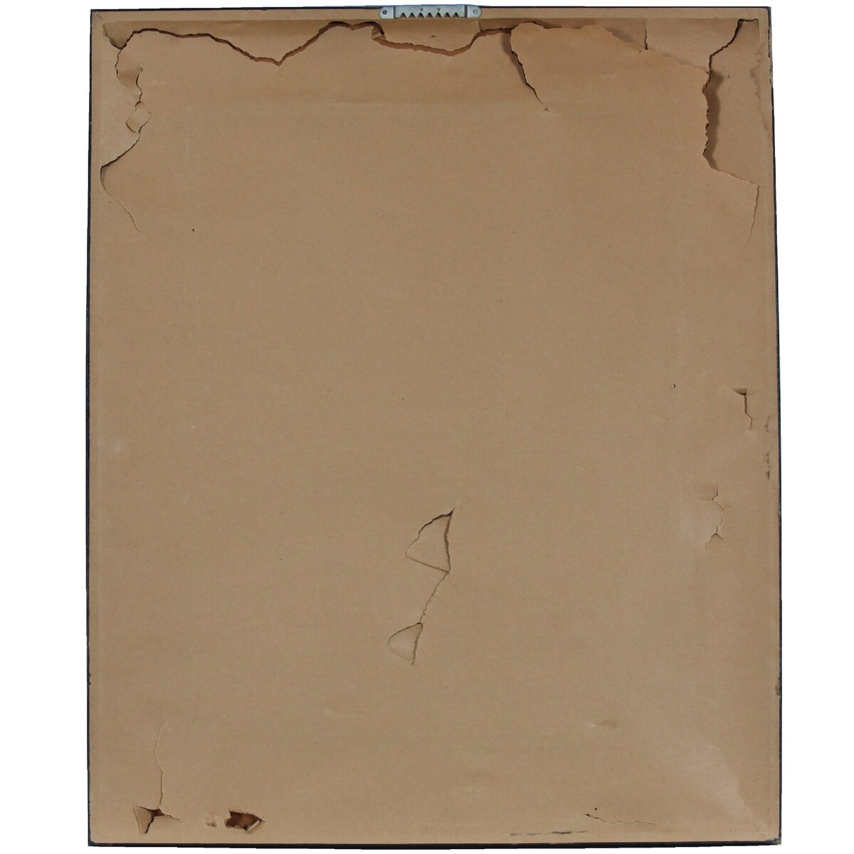 La pintura viene en un sencillo marco de madera con detalles en rojo.