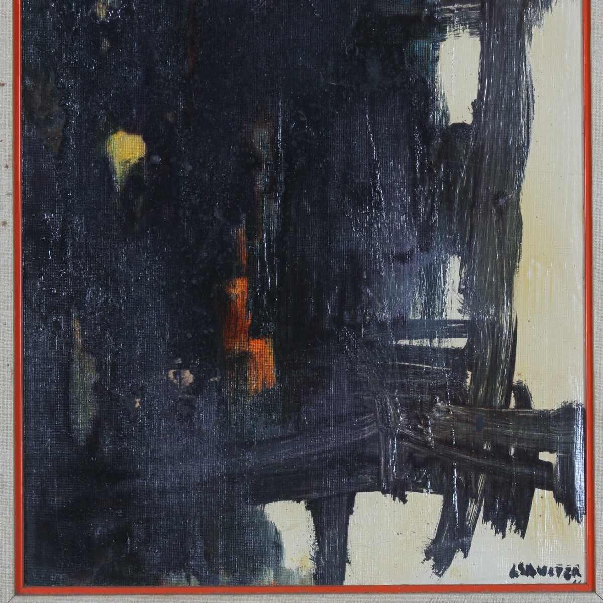 Pintura al oleo original de Leon Saulter a bordo de arte expresionista abstracto negro