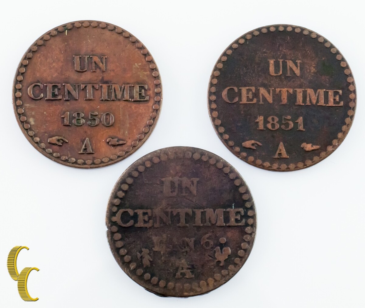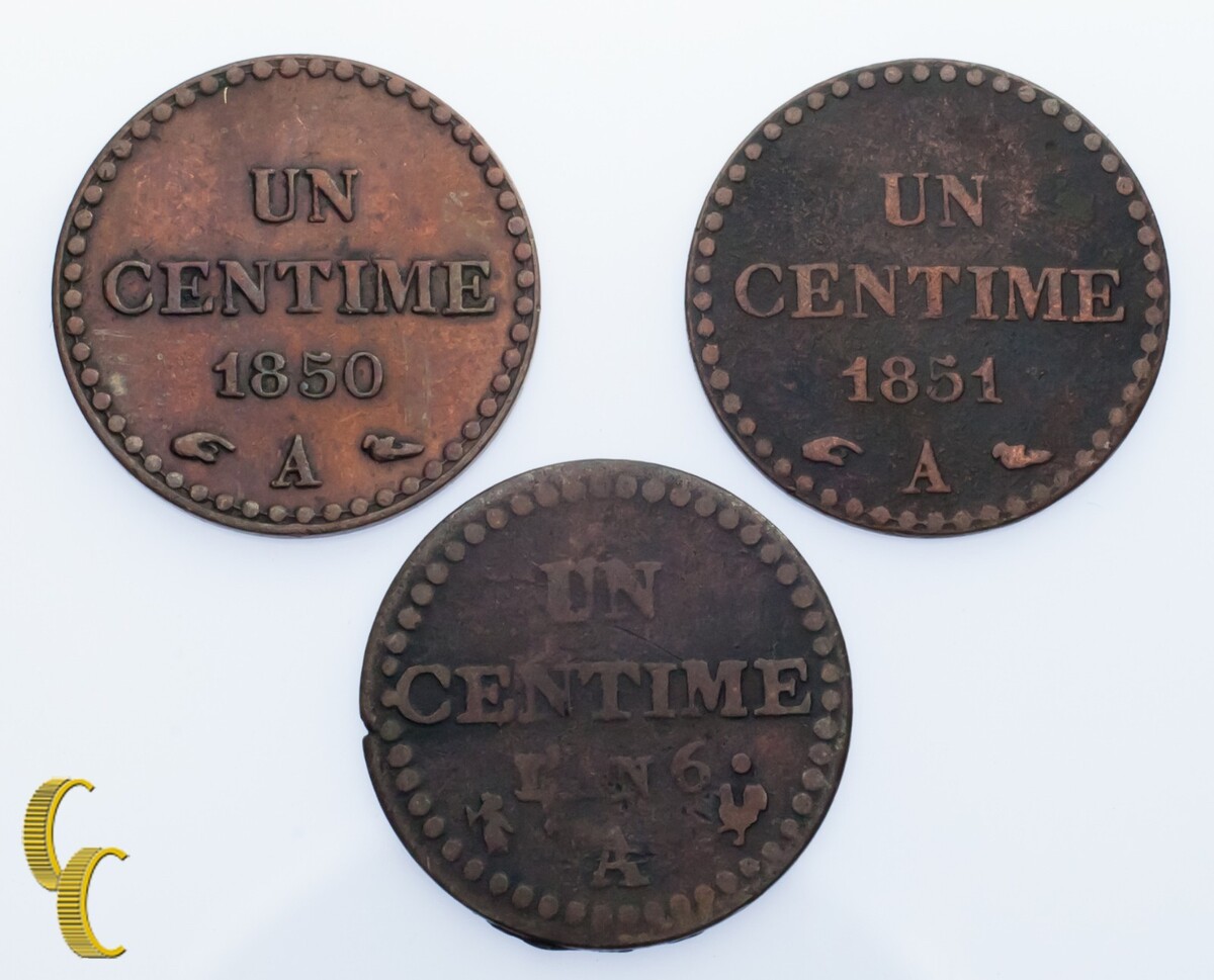 Francia Un Centime 3-Coin Lote 1850 , 1851 & and 45 similar items