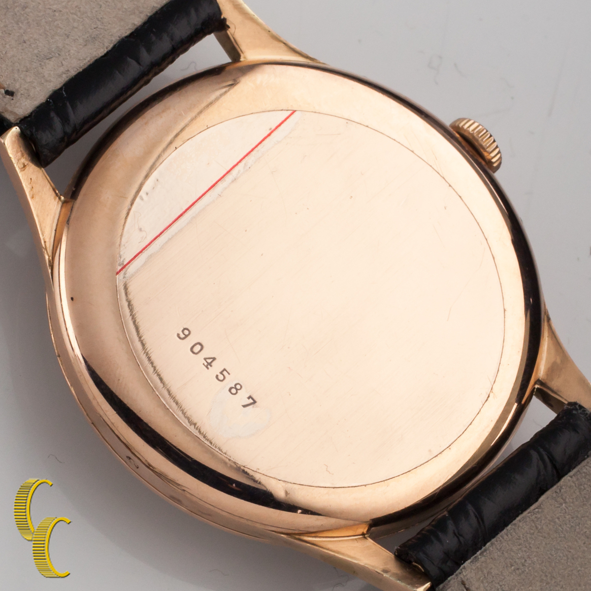 14k Oro Rosa DOXA Correa Manual Reloj W/ Único Pátina Esfera Negra Correa Piel
