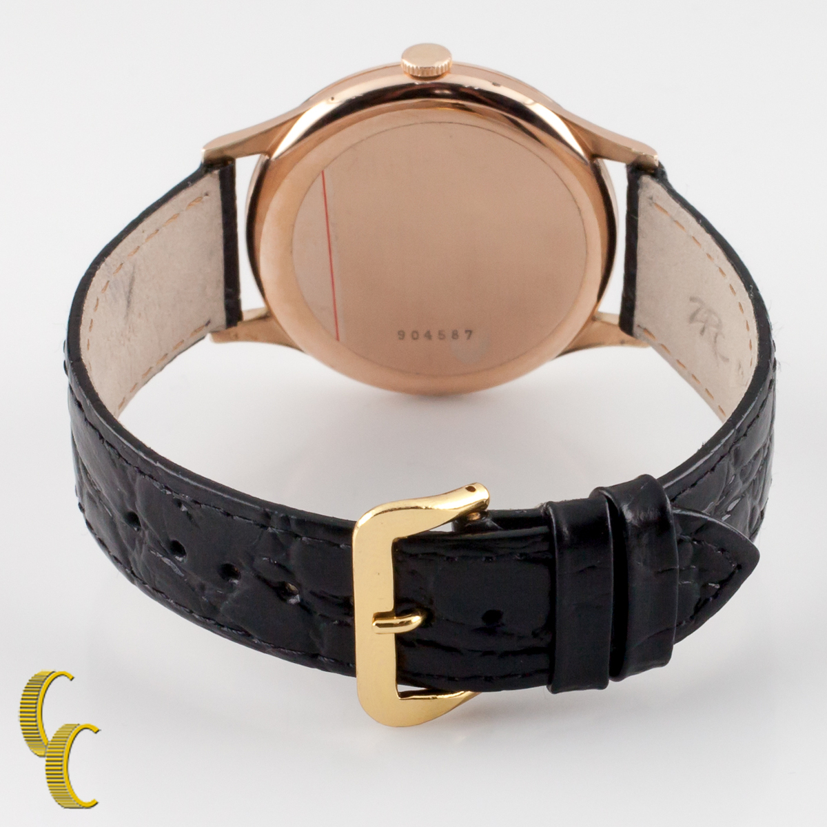 14k Oro Rosa DOXA Hombres Correa Manual Reloj W/ Correa Piel